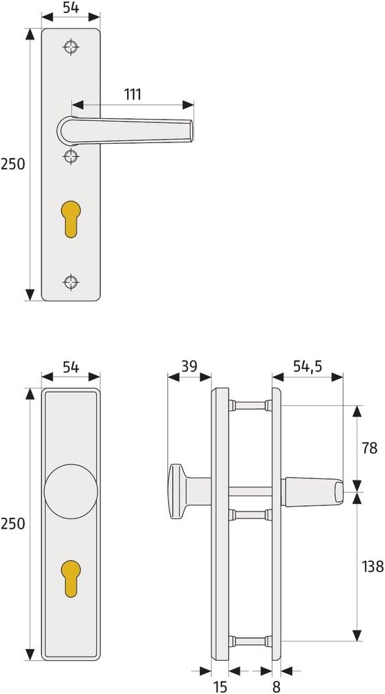 • Schutzbeschlag für Hauseingangstüren mit einem Vierkant von 10 mm sowie einem Abstand von 92 mm