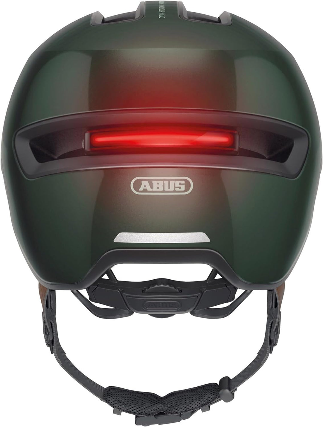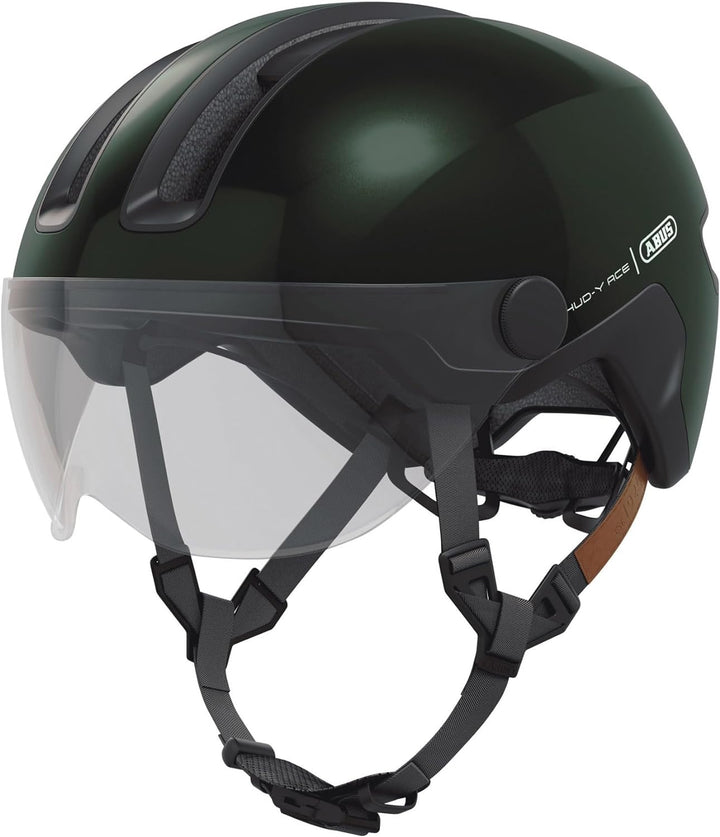 ABUS Stadthelm HUD-Y ACE - stylischer Fahrradhelm mit Visier und magnetischem, aufladbarem LED-Rückl