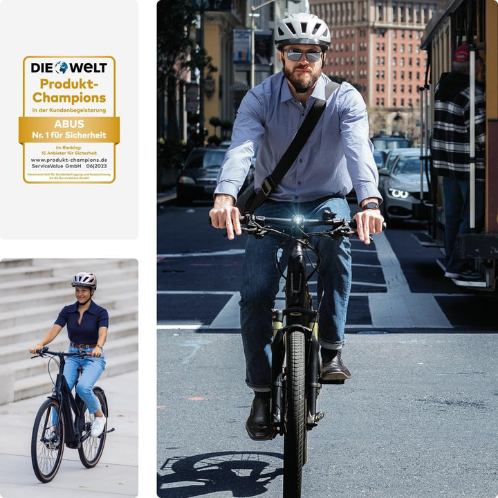 - Stets gut sichtbar auf dem Fahrrad: Ausgestattet mit einem hoch angebrachten, aufladbaren LED-Rücklicht mit 180° Sichtbarkeit - mit leuchtstarken Reflektoren