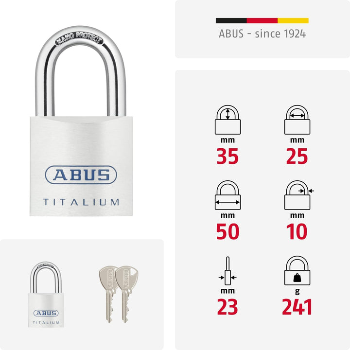 - Starkes Schloss für Objektsicherheit: Gewicht 260 g - Breite 50 mm, Höhe 93 mm, Tiefe 23 mm, Bügeldurchmesser 10 mm, lichte Bügelhöhe 35 mm, lichte Bügelweite 25 mm, inkl. 2 Schlüssel