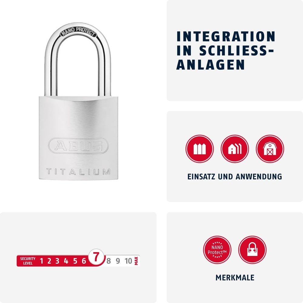 ABUS Titalium-Vorhangschloss 86TI/45 ohne Zylinder 27778, 86TI/45