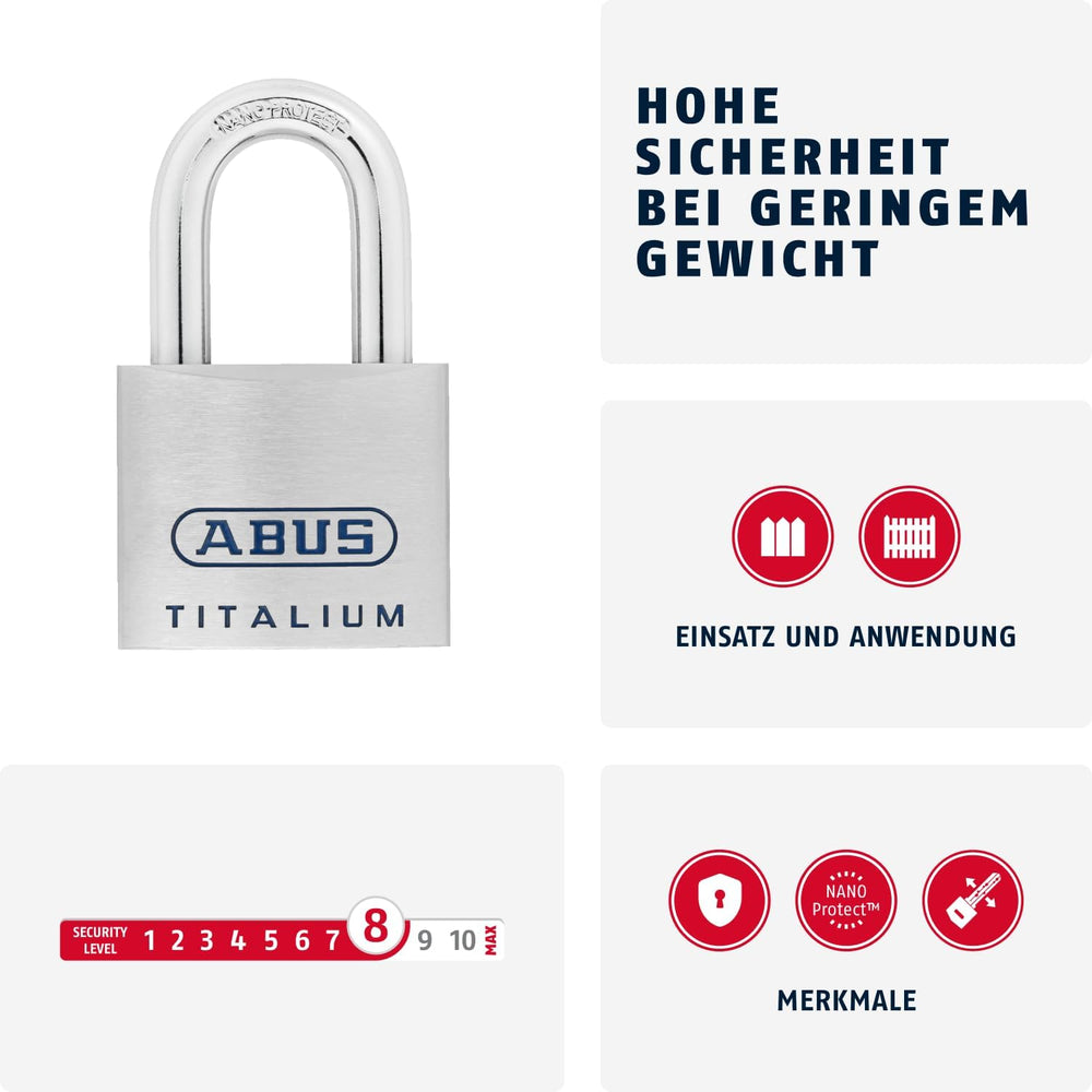 - Stabil und leicht: Der massive Schlosskörper aus innovativem Spezialaluminium ist extra leicht - guter Rostschutz dank gehärtetem Stahlbügel mit Nano Protect Beschichtung
