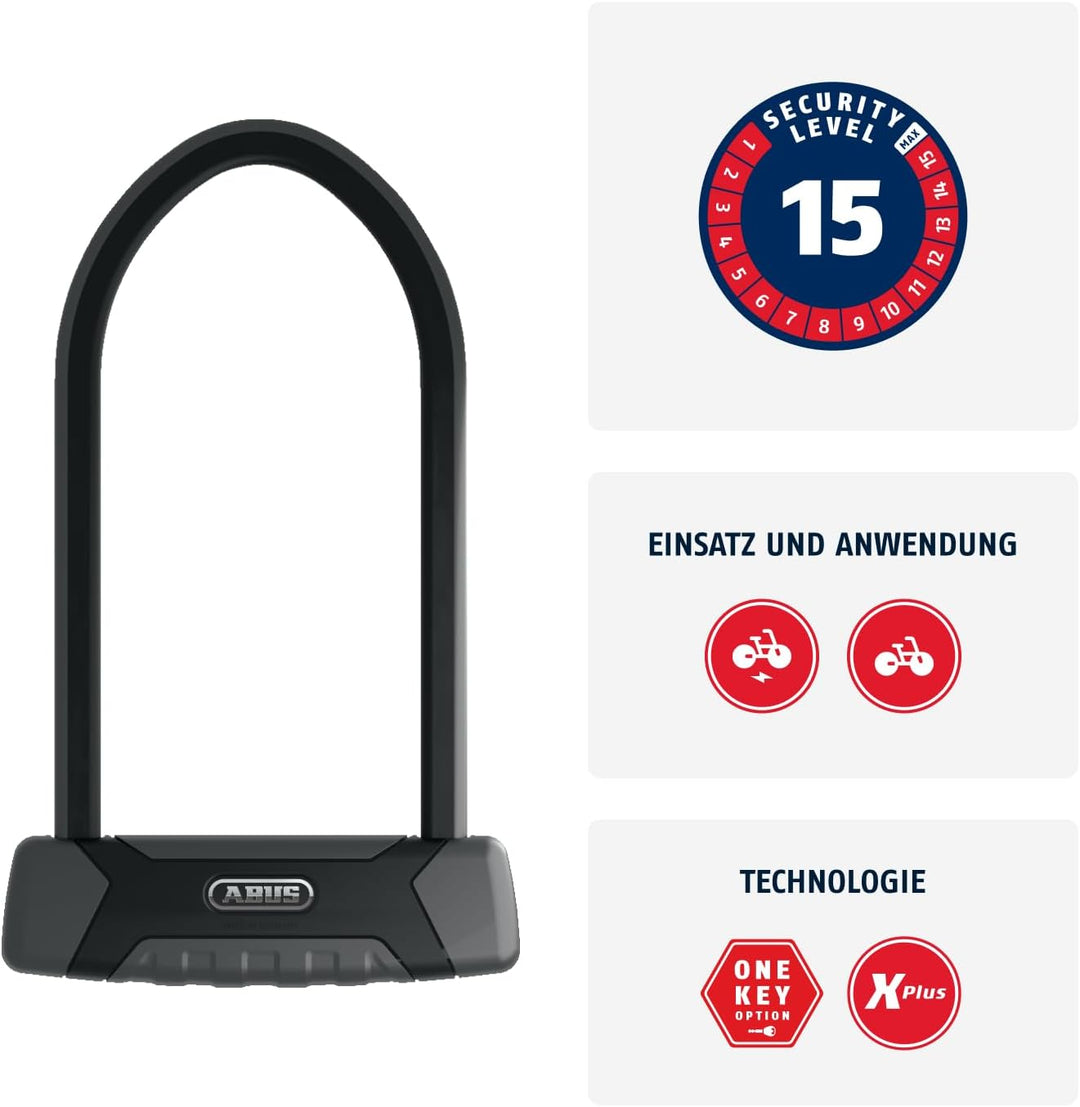 - ABUS XPLUS ZYLINDER: robustes und picking-resistentes U-Schloss mit ABUS XPlus Zylinder zum Schutz vor Manipulationen wie z.B. Picking