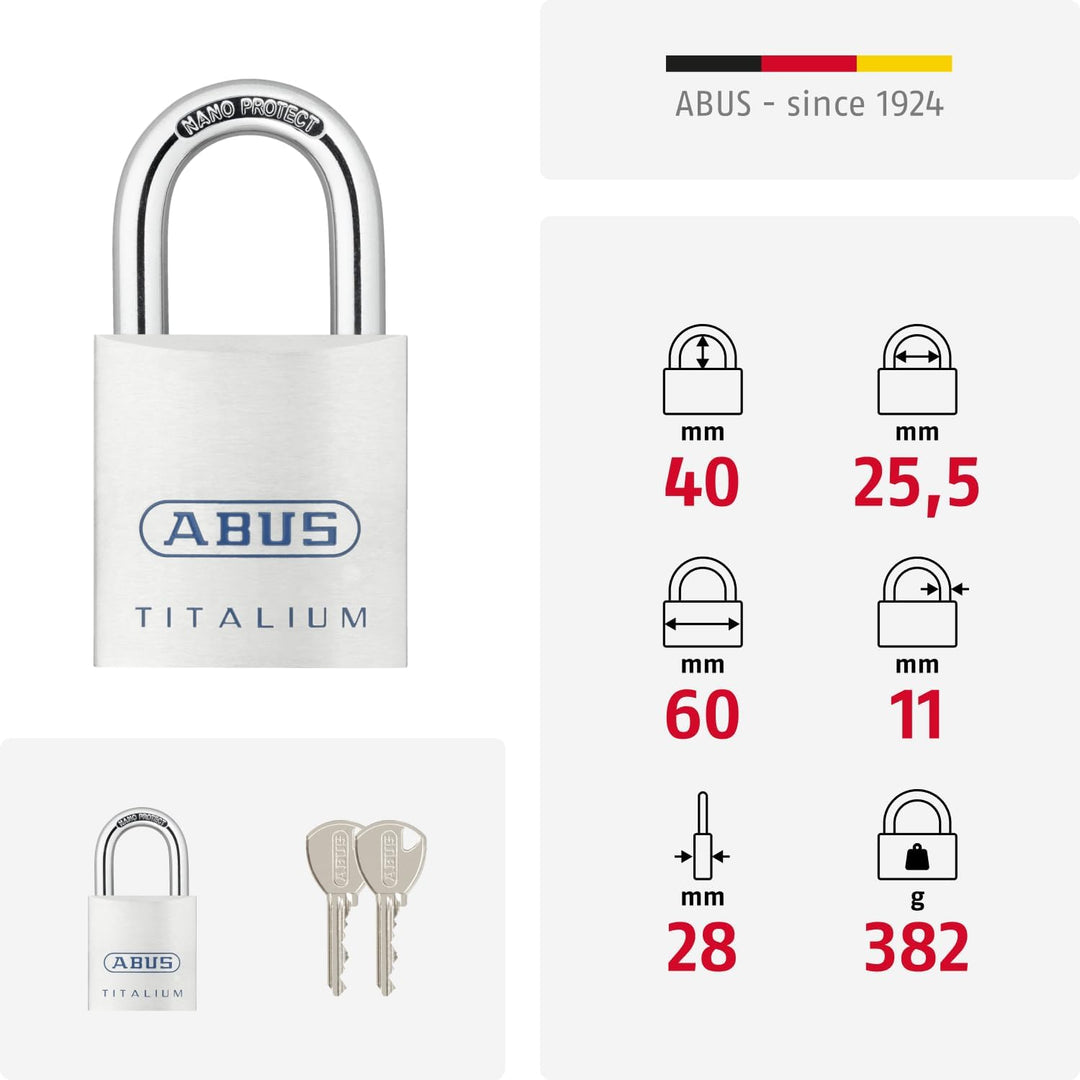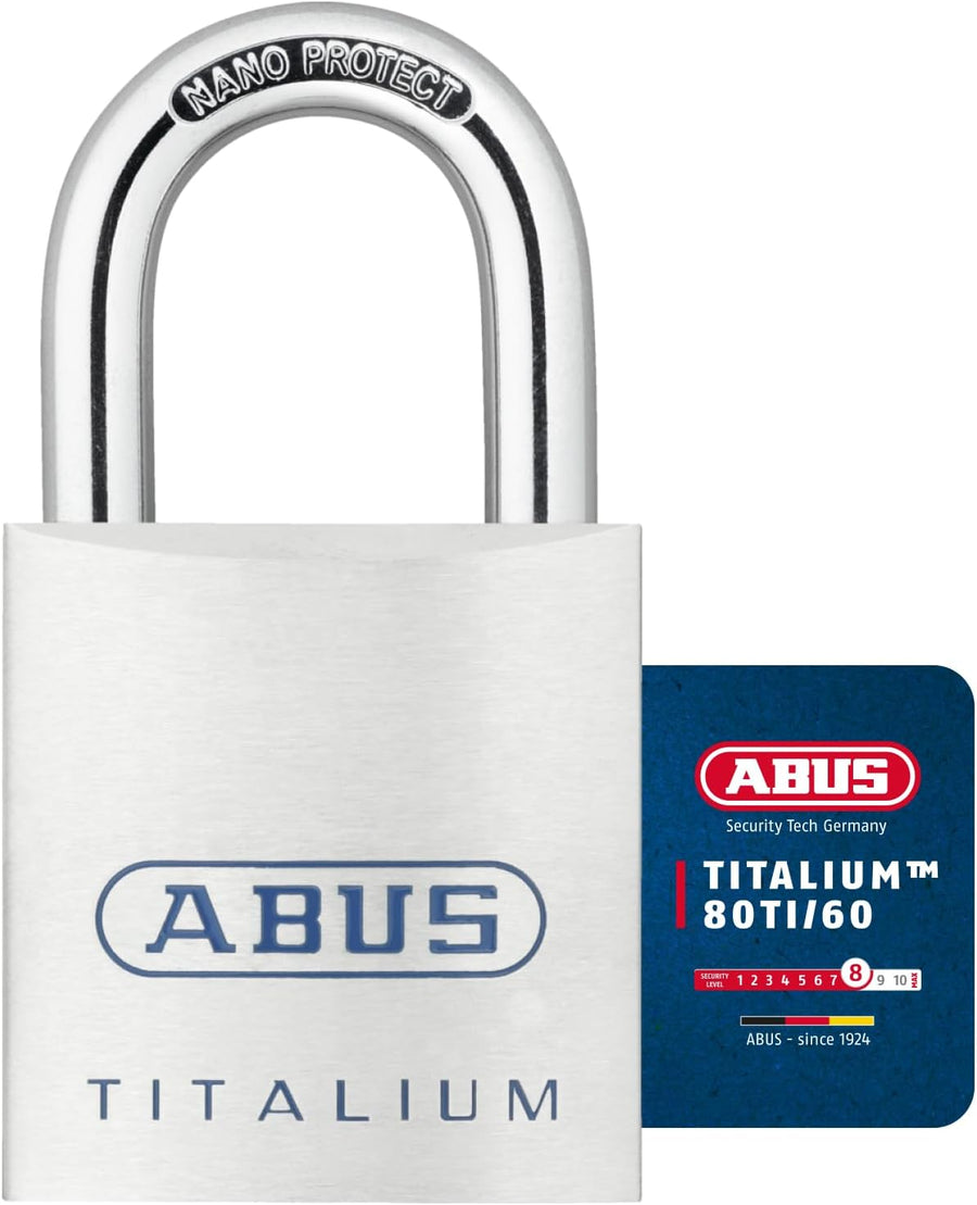 ABUS Titalium Vorhängeschloss 80TI/60 - Kellerschloss mit leichtem, massiven Schlosskörper aus Spezi