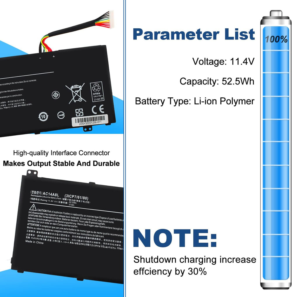 - 【BATTERIE-SPEZIFIKATIONEN】Akku typ: Li-ion; Farbe: Schwarz; Kapazität: 52.5Wh; Spannung: 11,4V; Packungen enthalten: 1x Laptop-Akku (mit kostenlosem Schraubendreher für einfache Installation).