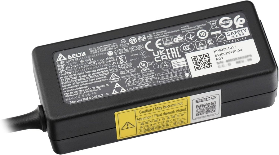 - Spannung: 19 Volt, Stomstärke: 2,37 Ampere, Ausgangsleistung: 45 Watt, Eingangsspannung: 100-240V / 50-60Hz, Energieeffizienz: V