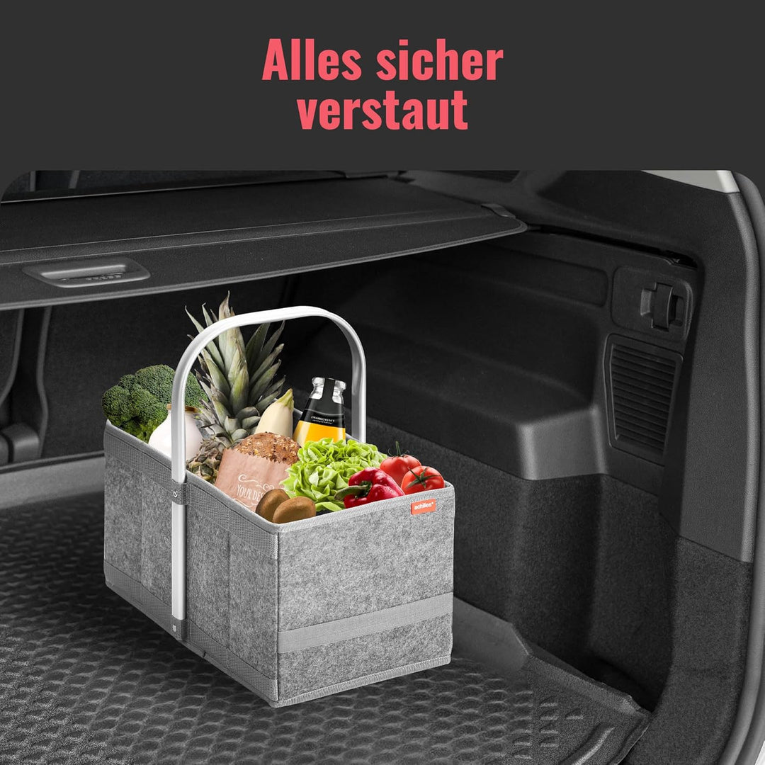 - EINFACHE HANDHABUNG: Um diesen faltbaren Einkaufskorb verwenden zu können, ist keine Montage notwendig! Einfach entfalten und der Filz Korb kann direkt verwendet werden. Und das beste: Der Alu-Tragegriff ist super angenehm in der Handhabung!