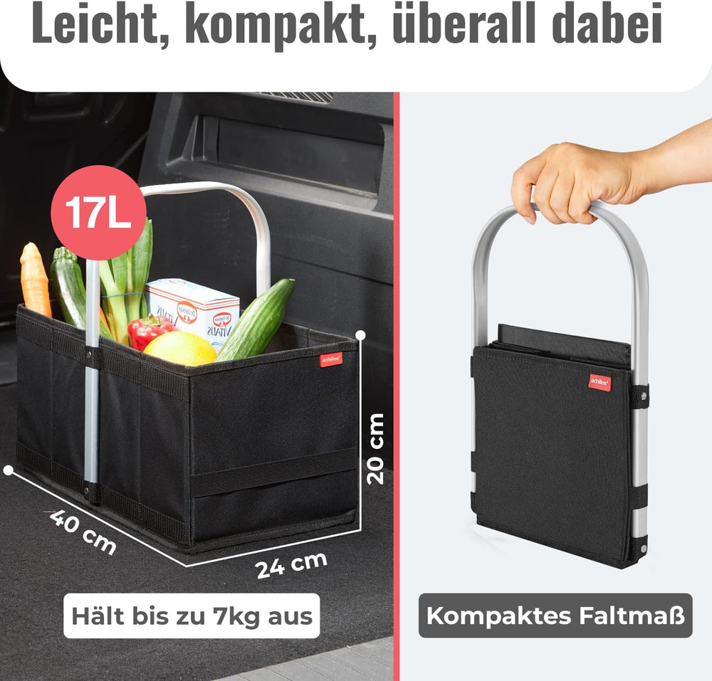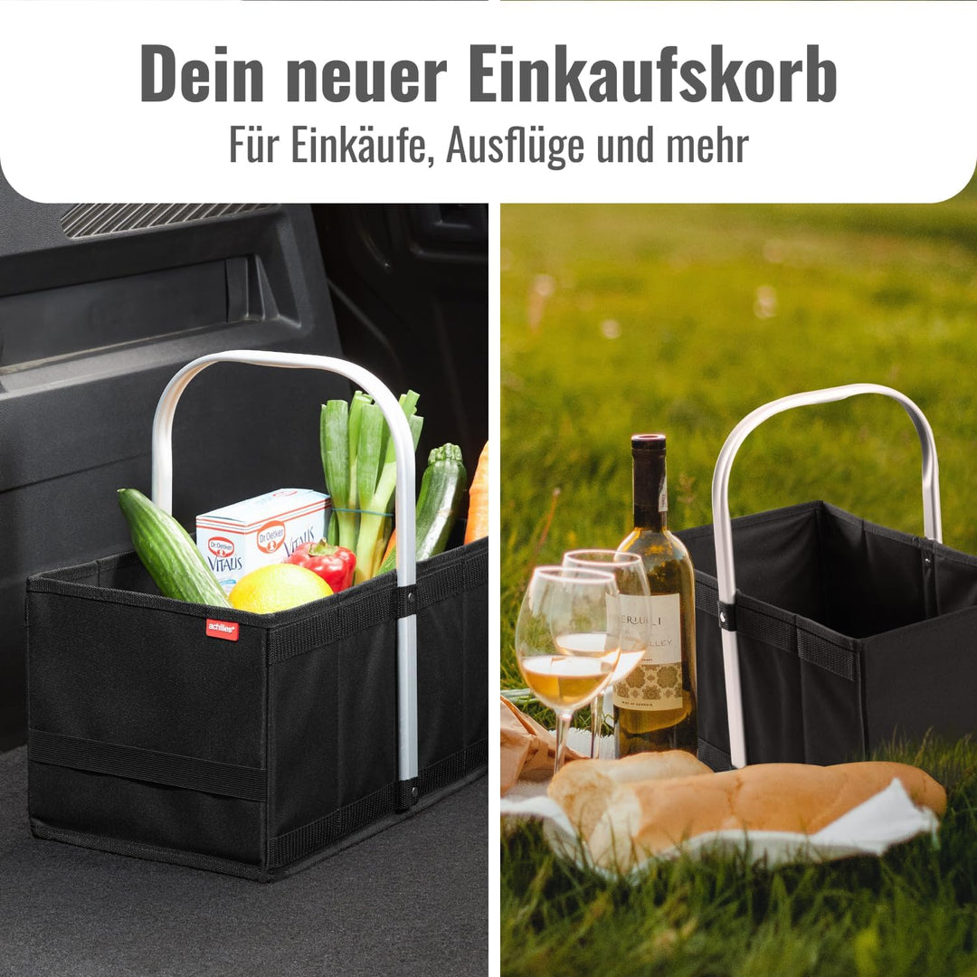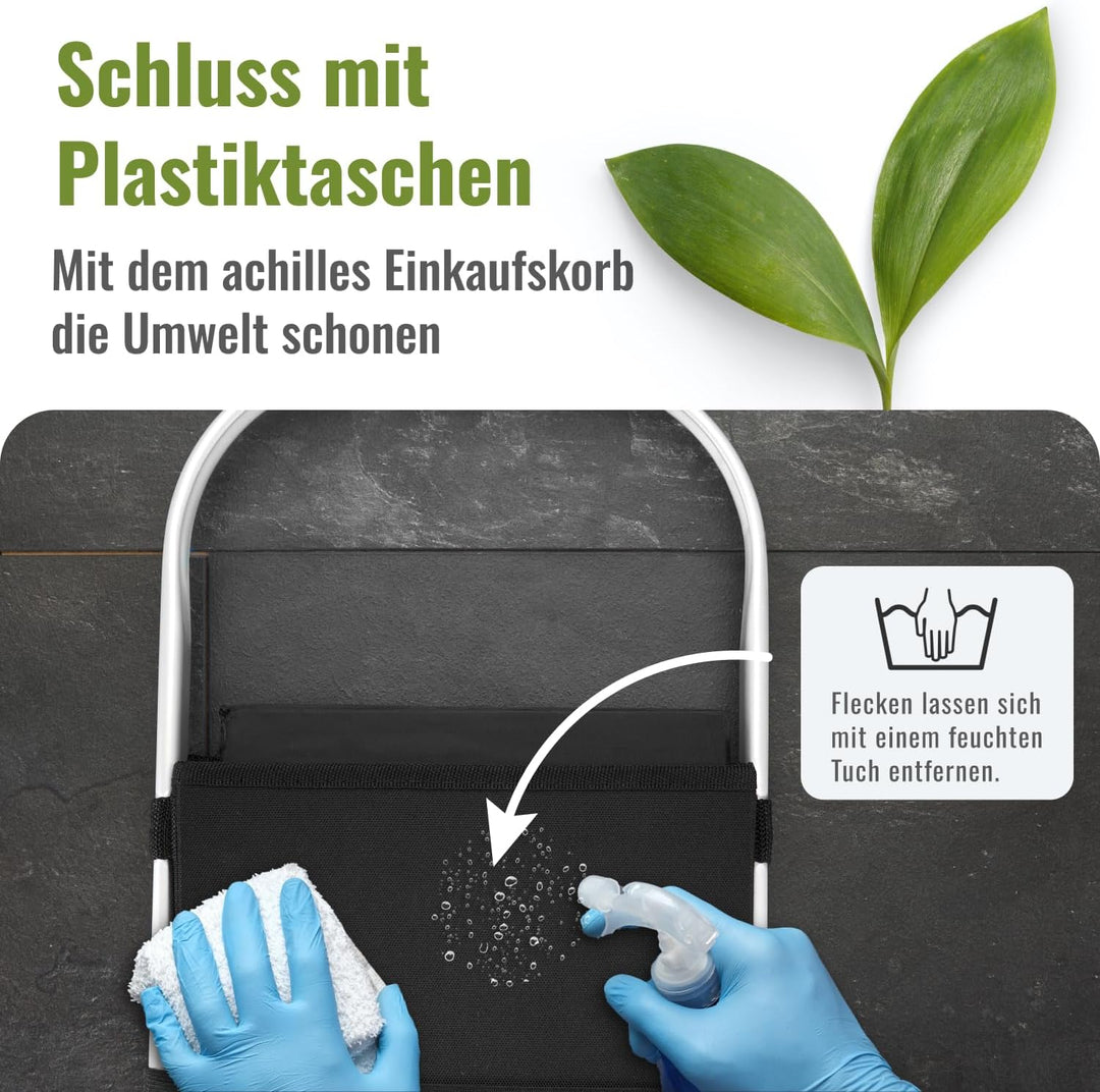 - OHNE MONTAGE: Der Natur-Einkaufskorb von Achilles ist unglaublich einfach in der Handhabung. Aufklappen, verstärkenden Einlegeboden hinein, fertig! Deshalb ist dieser besondere Einkaufskorb ein toller Begleiter für jeden Einkauf!