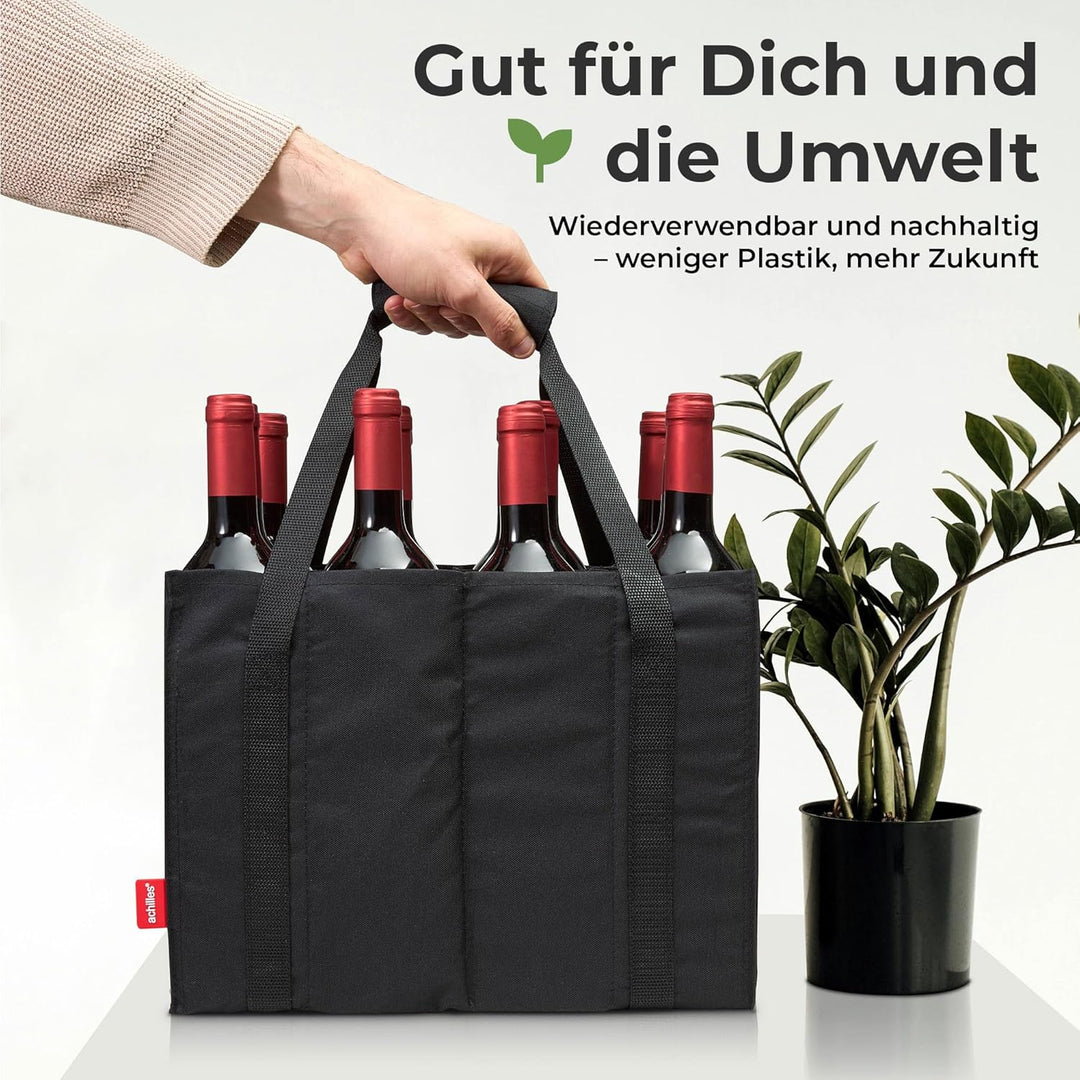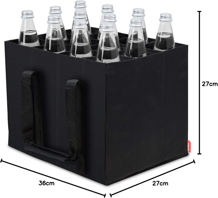 - EFFIZIENT & ROBUST: Mit der Flaschentasche von Achilles 36 cm x 27 cm x 27cm für bis zu 12 Flaschen mit je 1,5 Litern bleibt alles an seinem Platz. Wird die Bottlebag nicht gebraucht, kann sie flach zusammengelegt werden.