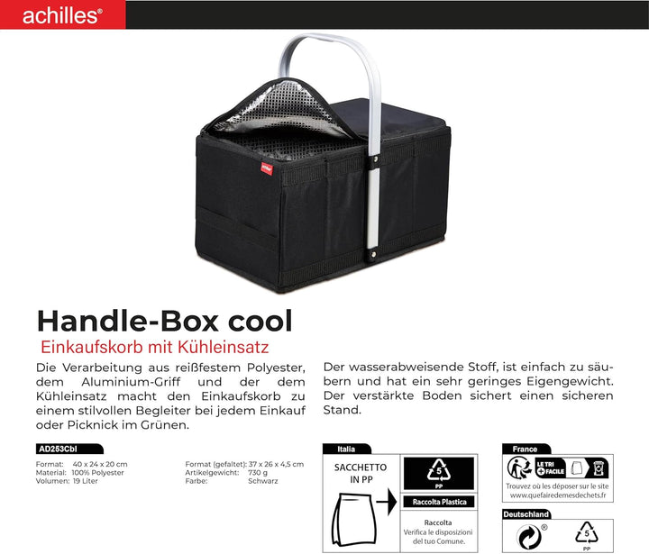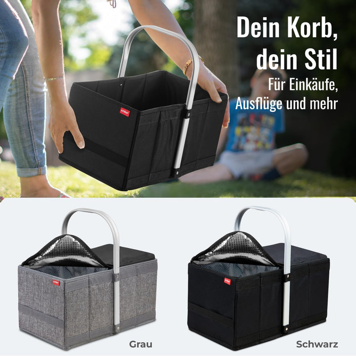 - Die Verarbeitung aus reissfestem Polyester, dem Aluminium-Griff und der dem Kühleinsatz macht den Einkaufskorb zu einem stilvollen Begleiter bei jedem Einkauf oder Picknick im Grünen.