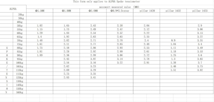 - Bestimmung der Spannung der Speichen für Rundspeichen, flache Speichen und Speichenspannung verschiedener Fertigradsätze