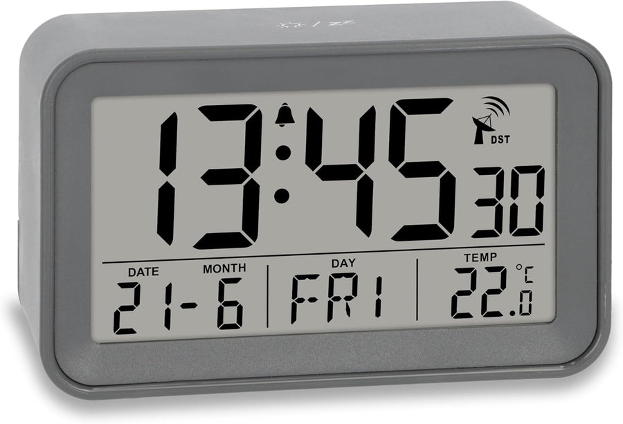 - Alle Informationen auf einen Blick: Neben der genauen Uhrzeit dank DCF-Funksignal bietet der Digitalwecker auch Temperaturanzeige, Wochentaganzeige und einen Kalender