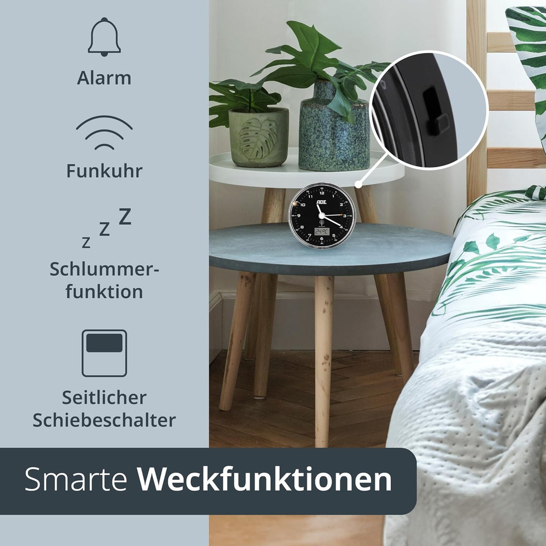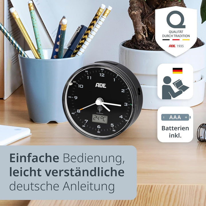 - Hamburger Traditionsmarke ADE: Unsere Kunden profitieren von über 85 Jahren Erfahrung, unserem Anspruch an qualitativ hochwertige Produkte und hohe Kundenzufriedenheit. So wie bei unserem Wecker analog ohne Ticken CK2312