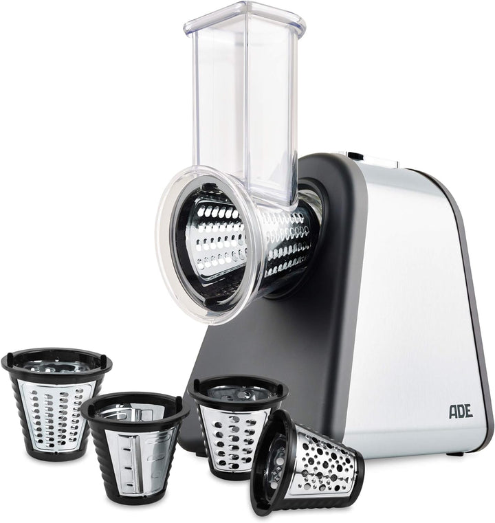 - Multireibe mit vier Trommeleinsätzen (spülmaschinengeeignet) mit extrascharfen Klingen aus Edelstahl für saubere Schnittergebnisse. Schnelle Demontage durch Bajonettverschluss