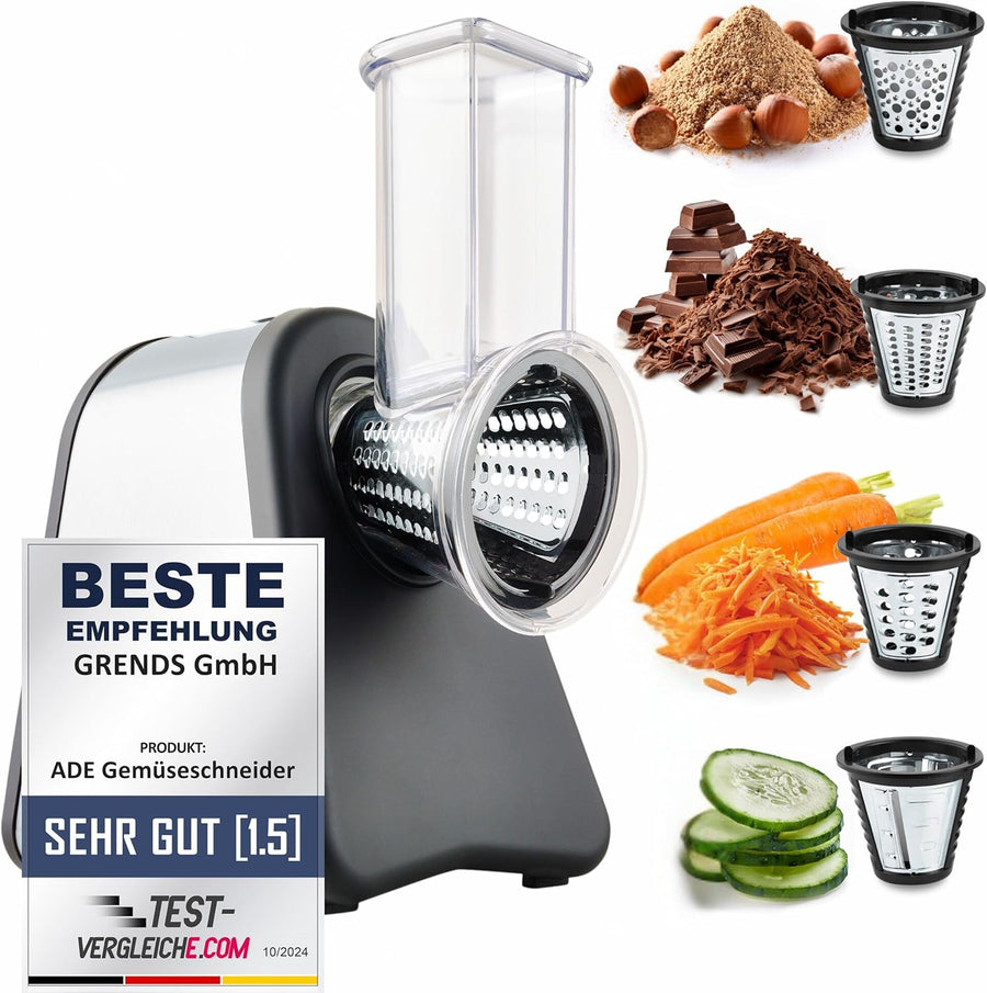 - Elektrischer Gemüseschneider zum schnellen Zerkleinern, Schneiden, Hacken, Raspeln oder Reiben von Gemüse, Hartkäse, Nüssen, Schokolade, Obst und vielem mehr