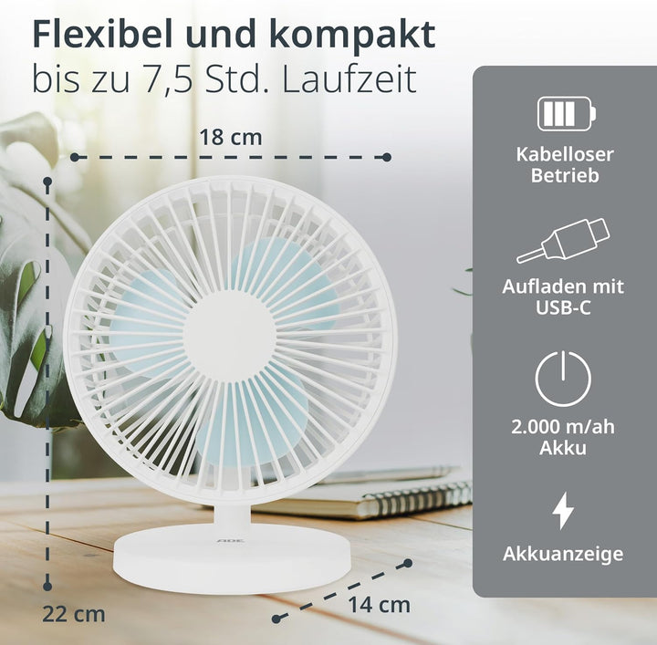 - Lange Akkulaufzeit: Geniesse bis zu 7,5 Stunden ununterbrochene Kühlung ohne Kabelsalat (auf Stufe 1). Ein 1m langes USB-C-Ladekabel ist im Lieferumfang enthalten, eine Anzeige zeigt an, wenn der Akku Ventilator aufgeladen werden muss
