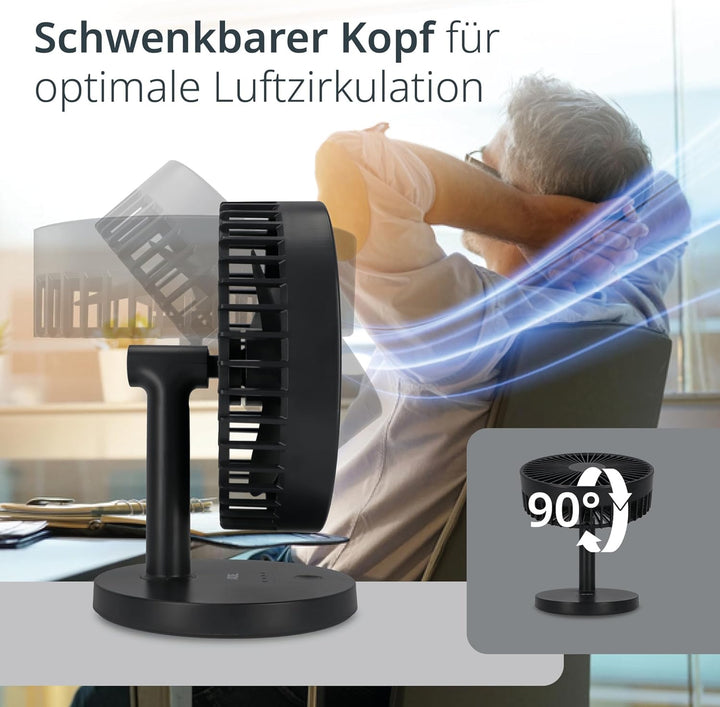 - Flüsterleise Technologie: Mit nur 40 dB auf der höchsten Stufe ist dieser kleine Ventilator mit Akku extrem leise und ideal für störungsfreies Arbeiten im Homeoffice oder entspanntes Einschlafen in warmen Sommernächten