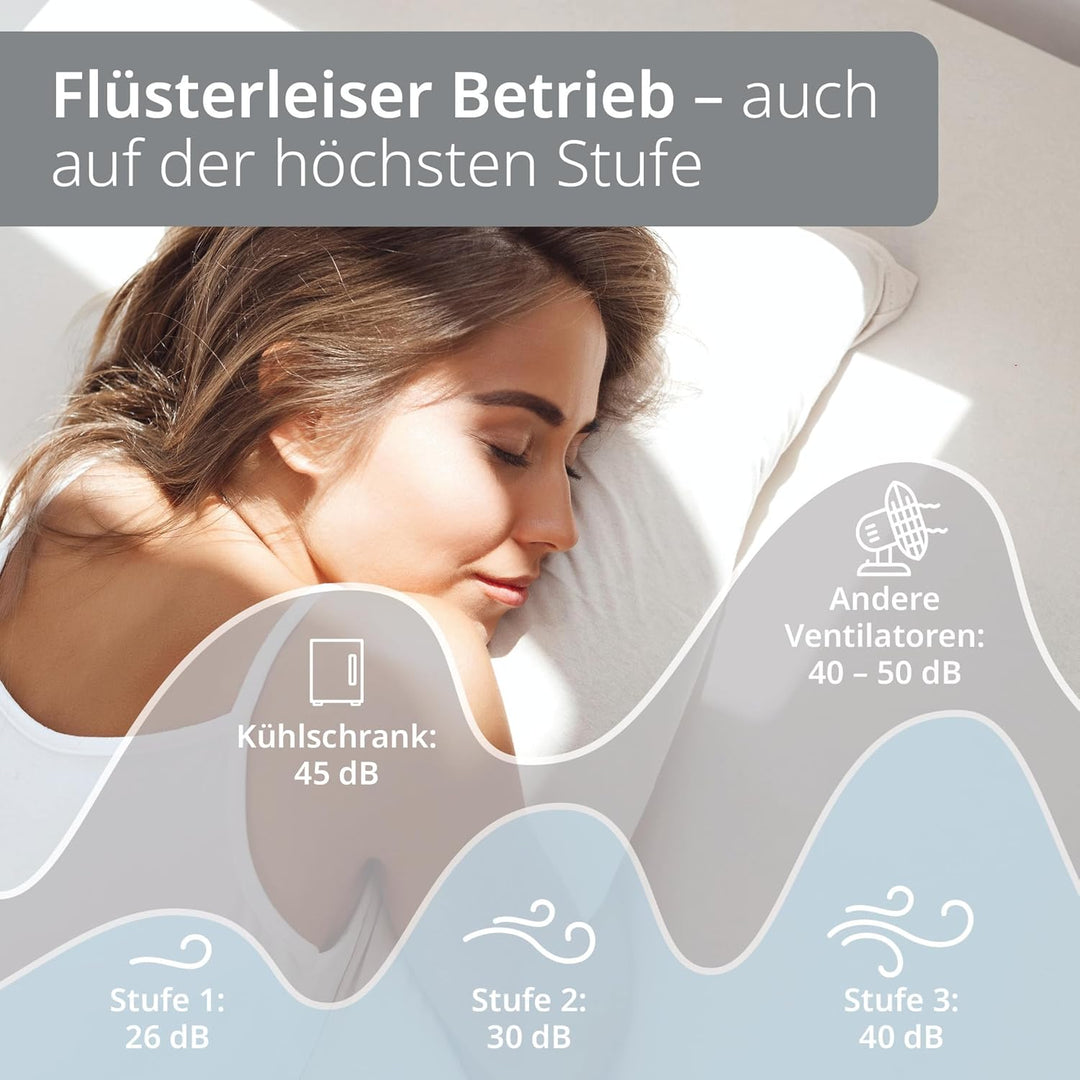 - Sicherer Stand und einfache Bedienung: Der feste Stand, der unkomplizierte Aufbau und seine kompakten Masse (18 x 22 cm) machen diesen leisen Ventilator zur idealen Wahl für jedes Zuhause