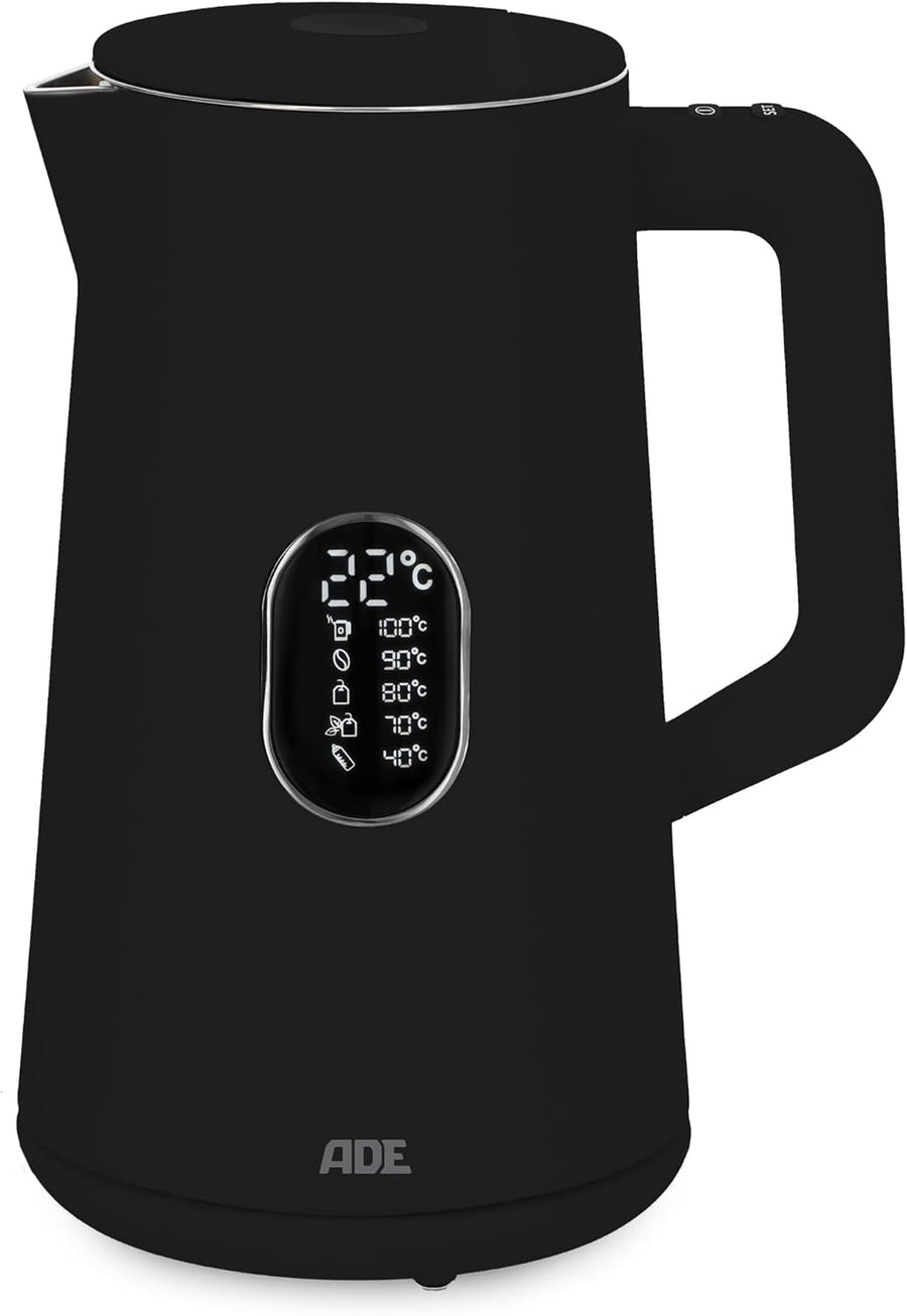 ADE Energiesparender Wasserkocher mit Temperatureinstellung 40-100°C | 1,5 l | Edelstahl | BPA-frei