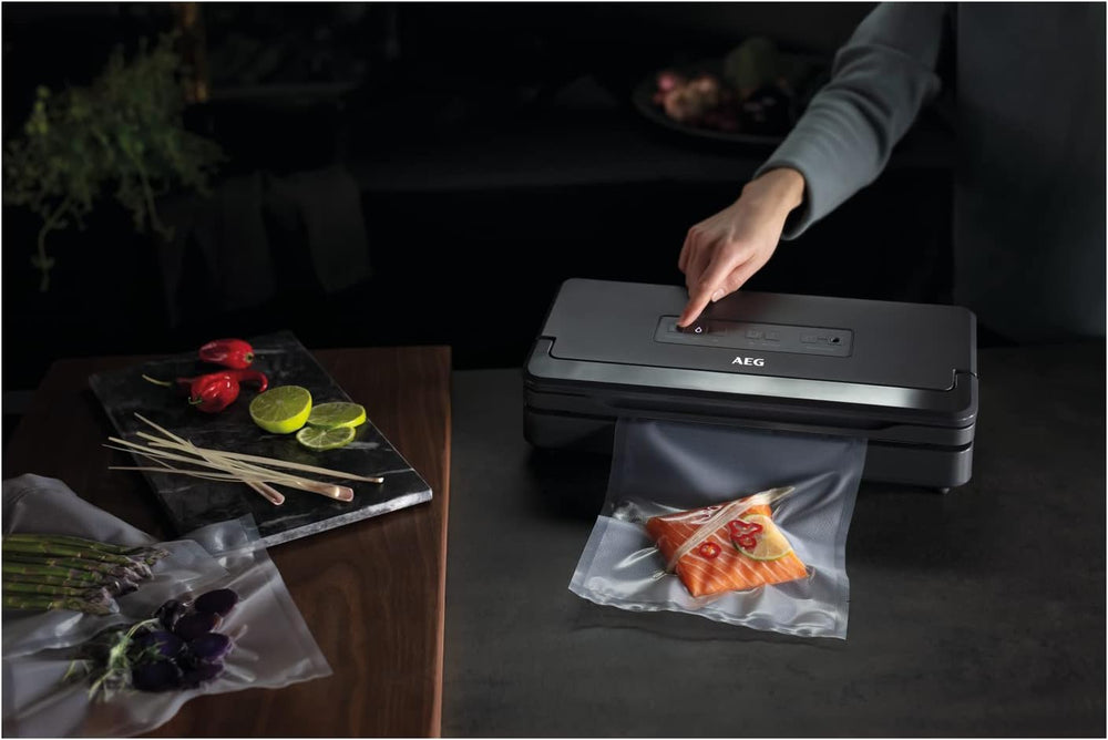 - Stärkere Versiegelung: Dank doppelter Versiegelung werden auch Lebensmittel mit flüssiger Konsistenz zuverlässig vakuumiert - besonders starke Pumpe mit einer Leistung von 12l/Min.