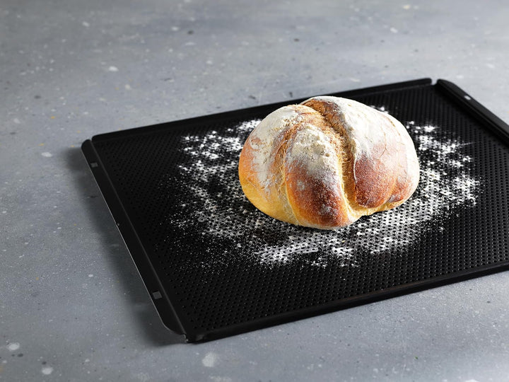 - Unser Patisserie-Backblech für den CombiSteam hat eine perforierte Oberfläche, um eine gleichmässige Wärmeverteilung zu gewährleisten.