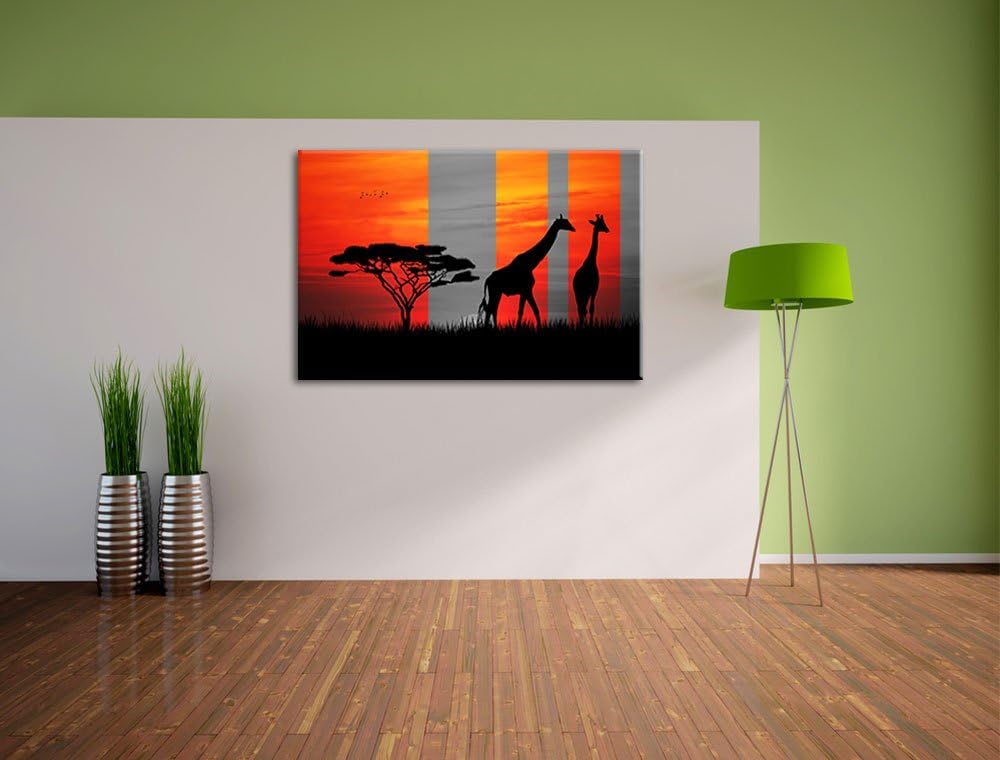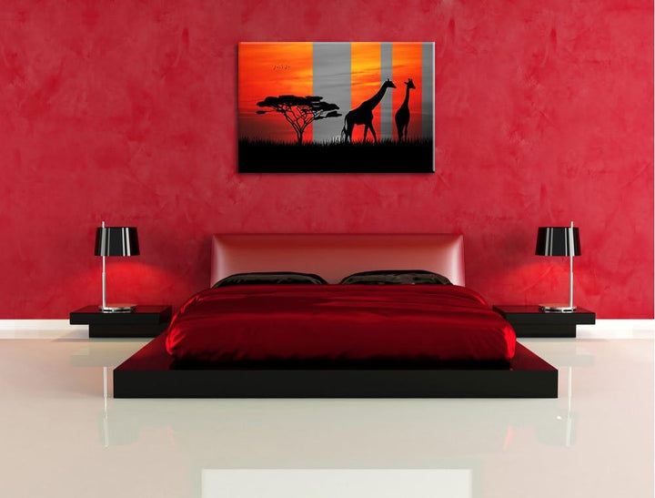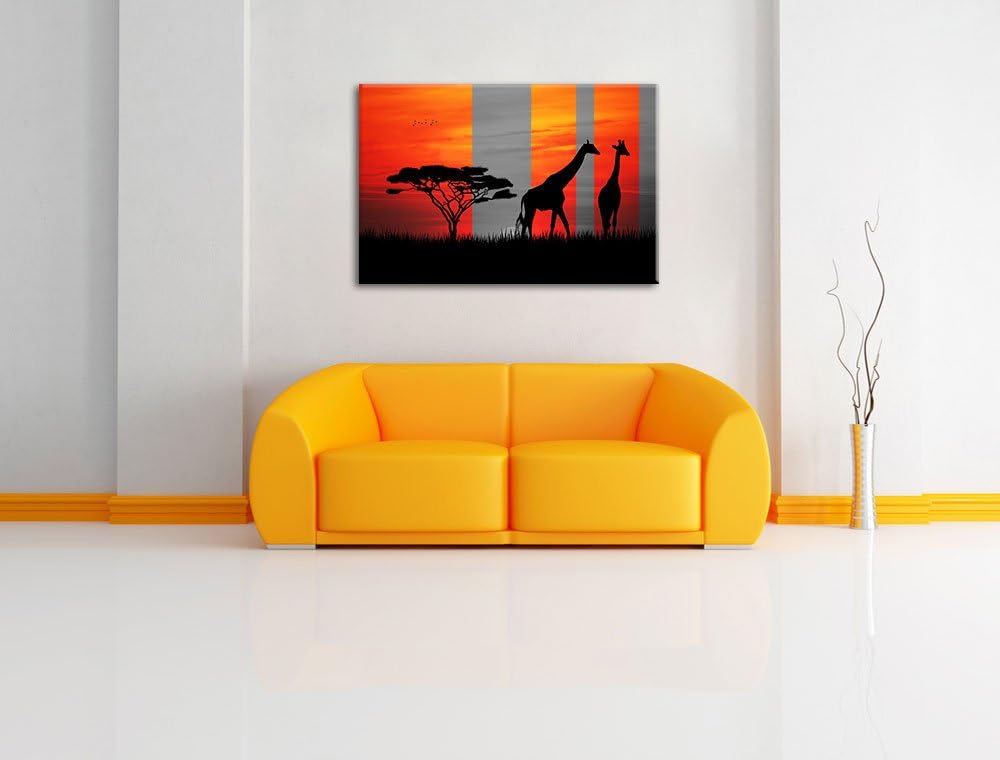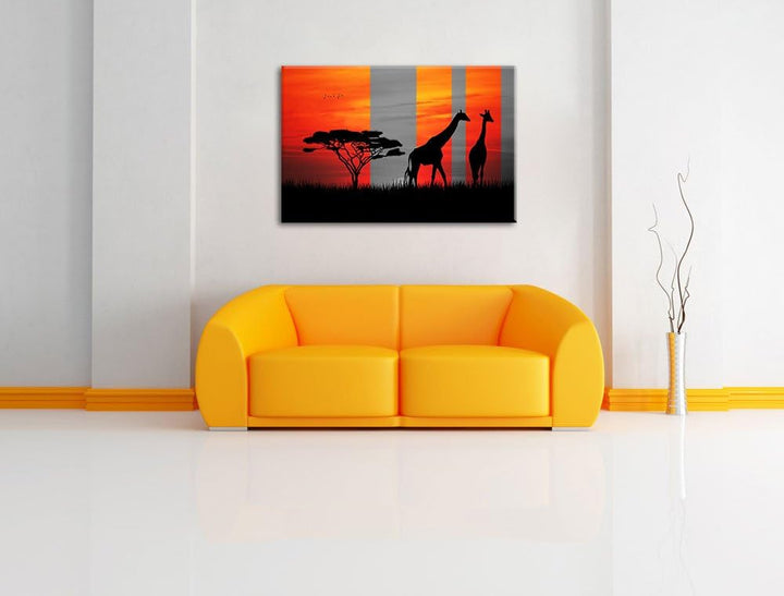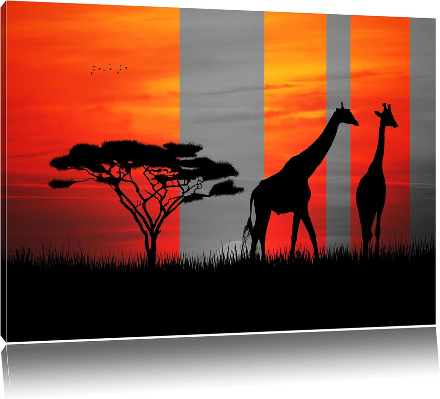 Afrika Giraffen im Sonnenuntergang schwarz/weiss Format: 100x70 auf Leinwand, XXL riesige Bilder fer