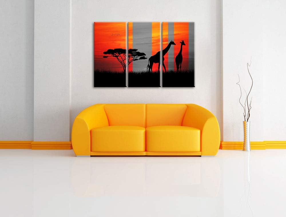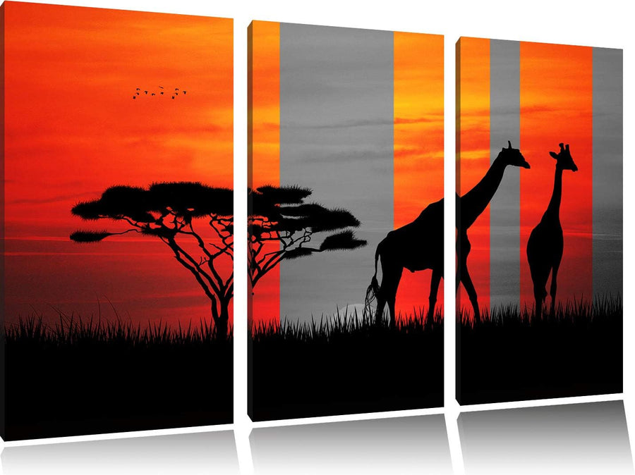 Afrika Giraffen im Sonnenuntergang schwarz/weiss 3-Teiler Leinwandbild 120x80 Bild auf Leinwand, XXL