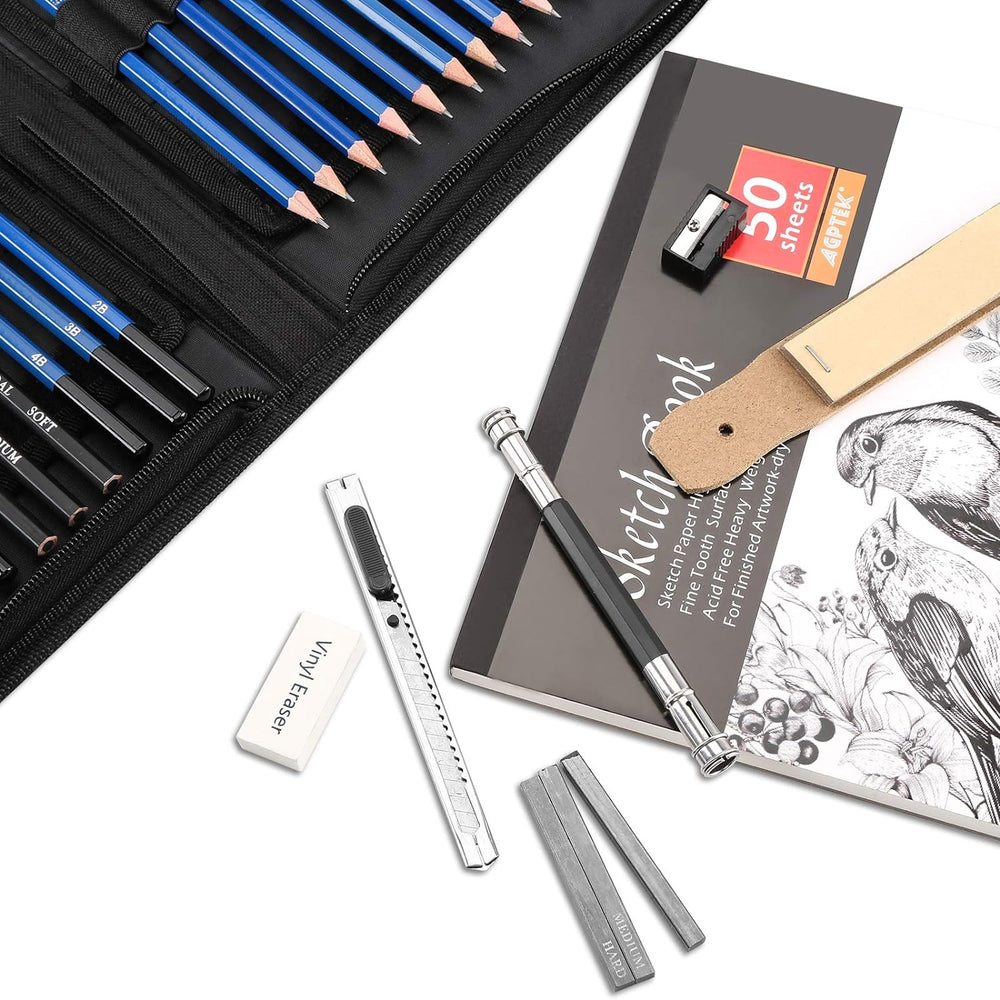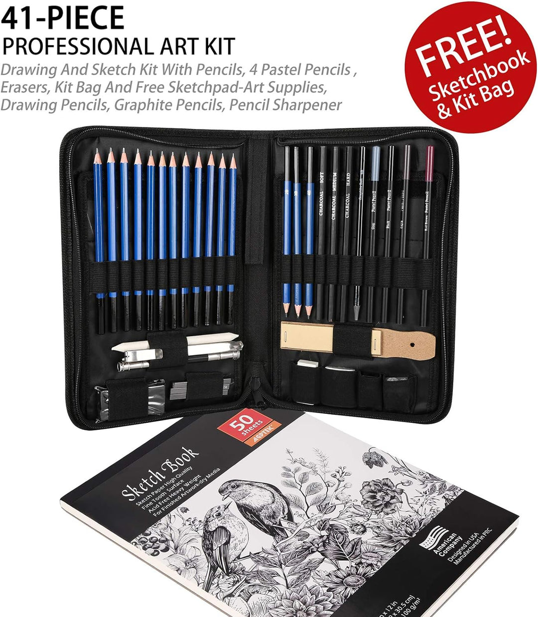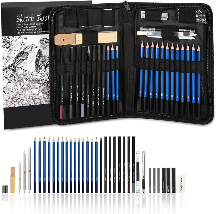 - 【41 Teile für alle Ihre Bedürfnisse】– Der Set bietet ein 50 Blatt Skizzenblock und eine breite Vielfalt von Zeichenstiften und hochwertigen Skizzierstiften für alle Ebenen der Zeichnung, zum Beispiel Bleistifte, Kohlestifte, Pastelstifte, Graphitstifte usw. Sie werden alle Stifte haben, die Ihnen helfen können, dünne, klare Linien und wunderschöne Mischung und Farbton zu schaffen.