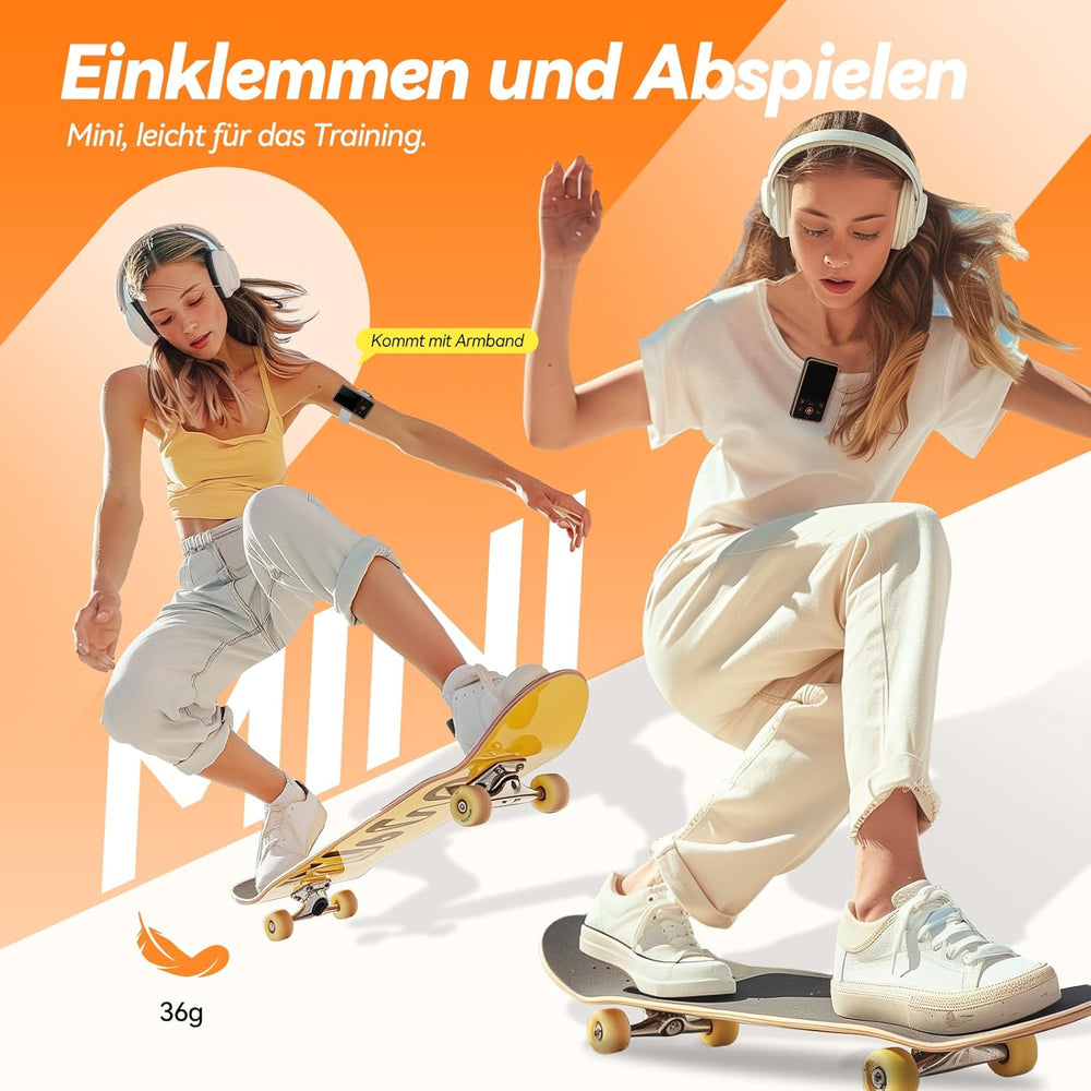 - đăStarkes Funktionsdesign MP3 Player ă bietet Funktionen wie Musik, SchrittzĂ€hler, Aufnahme, Radio, Bilder, E-Books, Wecker und Video. Ein perfekter Ersatz fĂŒr Ihr Handy wĂ€hrend des Sports, spart Akkuleistung und verlĂ€ngert die Lebensdauer