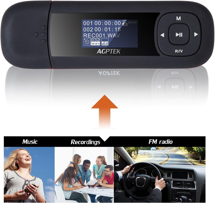- 【Energieeffizient OLCD Display】 Mit dem OLCD-Bildschirm können Sie Strom sparen. Und zeigt deutlich den Namen des abgespielten Songs. Herstellt aus Kunststoffmaterial: Man fühlt sich der Körper des USB MP3 Players weich, schmutzabweisend. Es wird