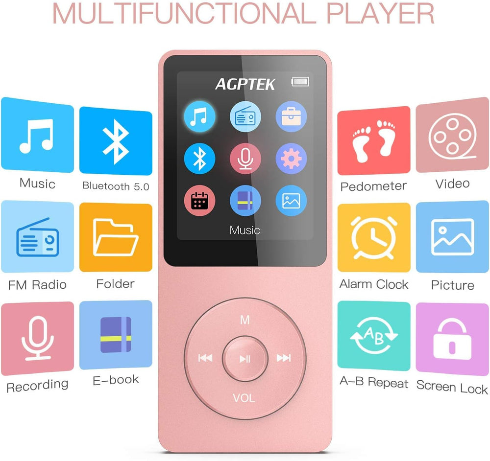 - ♬【 70 Stunden Wiedergabezeit mit 16GB Speicher 】Bis zu 70 Stunden Wiedergabezeit haben Sie keine Sorge, dass der Akku nicht schnell ist. Mit 16GB Speicher kann 4000 Lieder gespeichert werden, unterstützt bis 128GB. 1,8 Zoll TFT-Farbbildschirm ist klares und schönes Display.