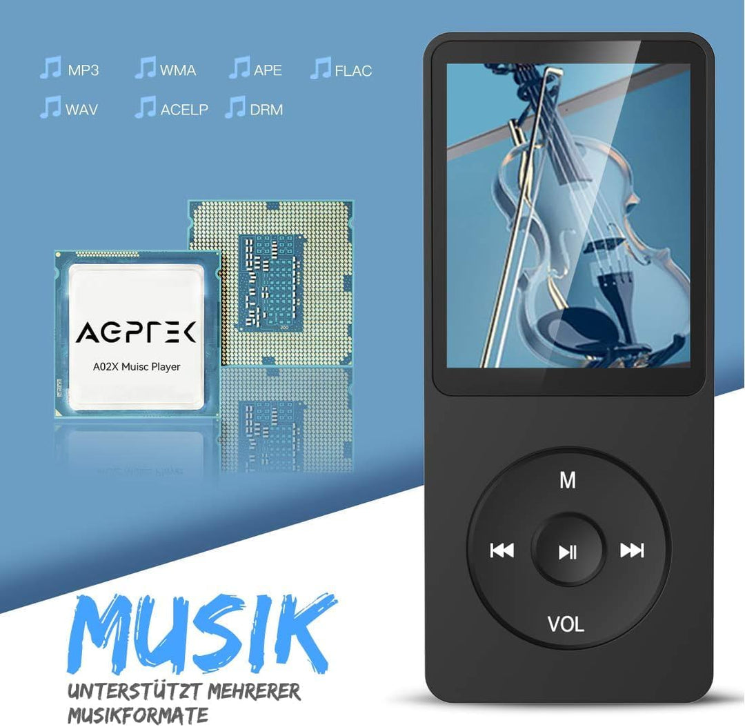 - ♪【Klassisches Design】Der echte A02 wird von AGPTEK verkauft. KLASSISCHES DESIGN: MP3 Geboren für Musik und Sport mit ursprünglichem Hi-Fi. Unterstützt MP3, WMA, FLAC, APE. Heller und reiner Klang. 3 Farben zur Auswahl. Perfektes Geschenk für