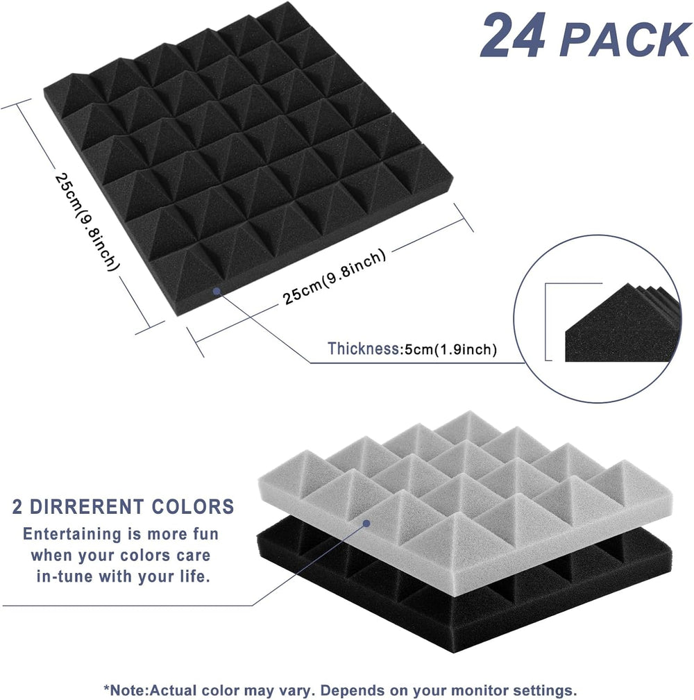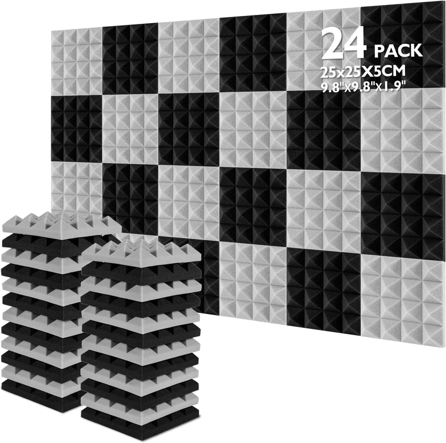 AGPtEK Schalldämmende Polsterung 24 Stück Schaumstoff-Dämmplatten 25 x 25 x 5 cm Akustikschaumstoff