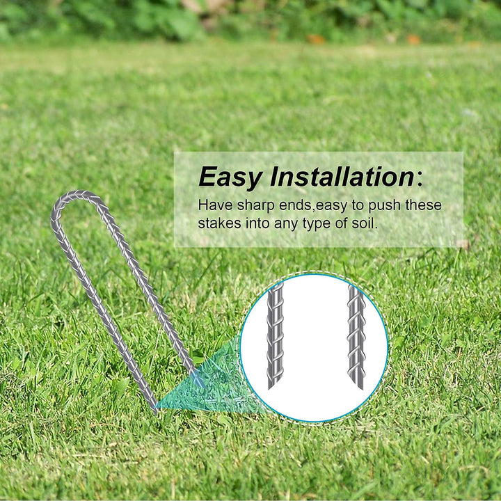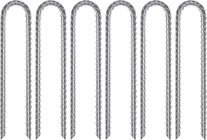 - 【SCHARFES ENDE】: Das meisselspitzige Ende dieses U-förmigen Bewehrungsstabs ist so scharf, dass Sie ihn mit dem Hammer problemlos in Erde, Wiese, Sand, harten Boden und felsigen Boden versenken können. Zusätzlich ist der Trampolin-Hering auch lang