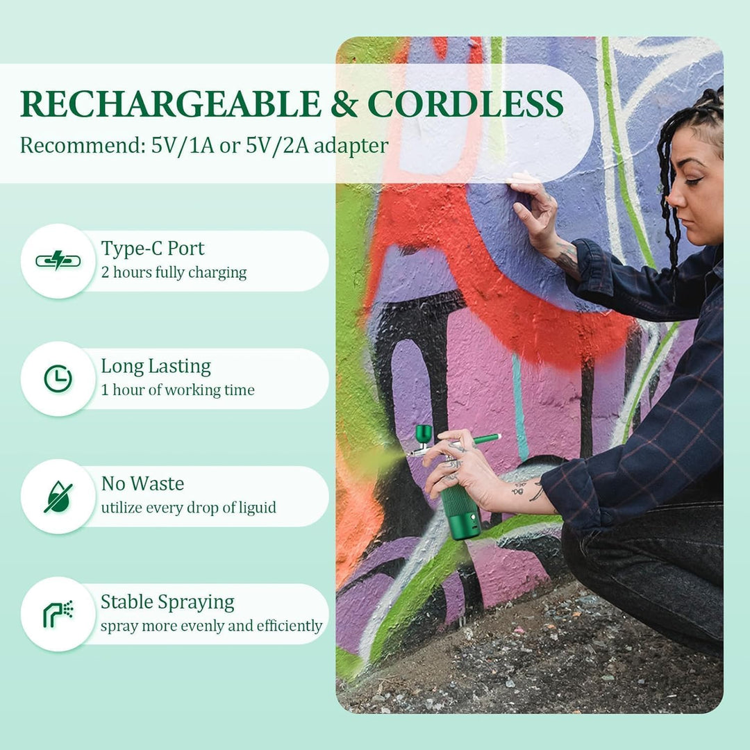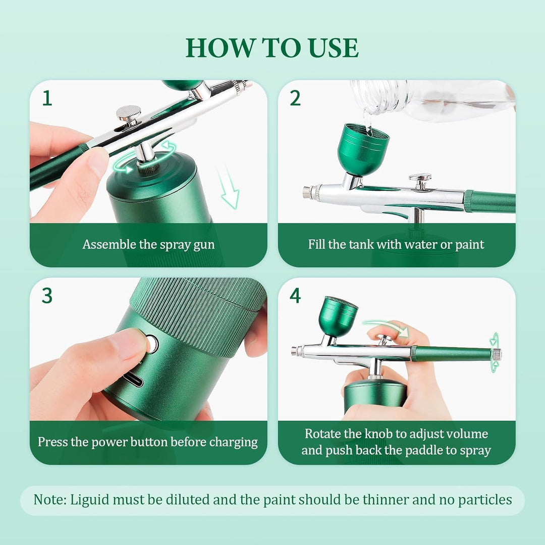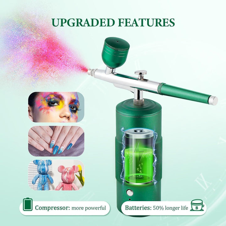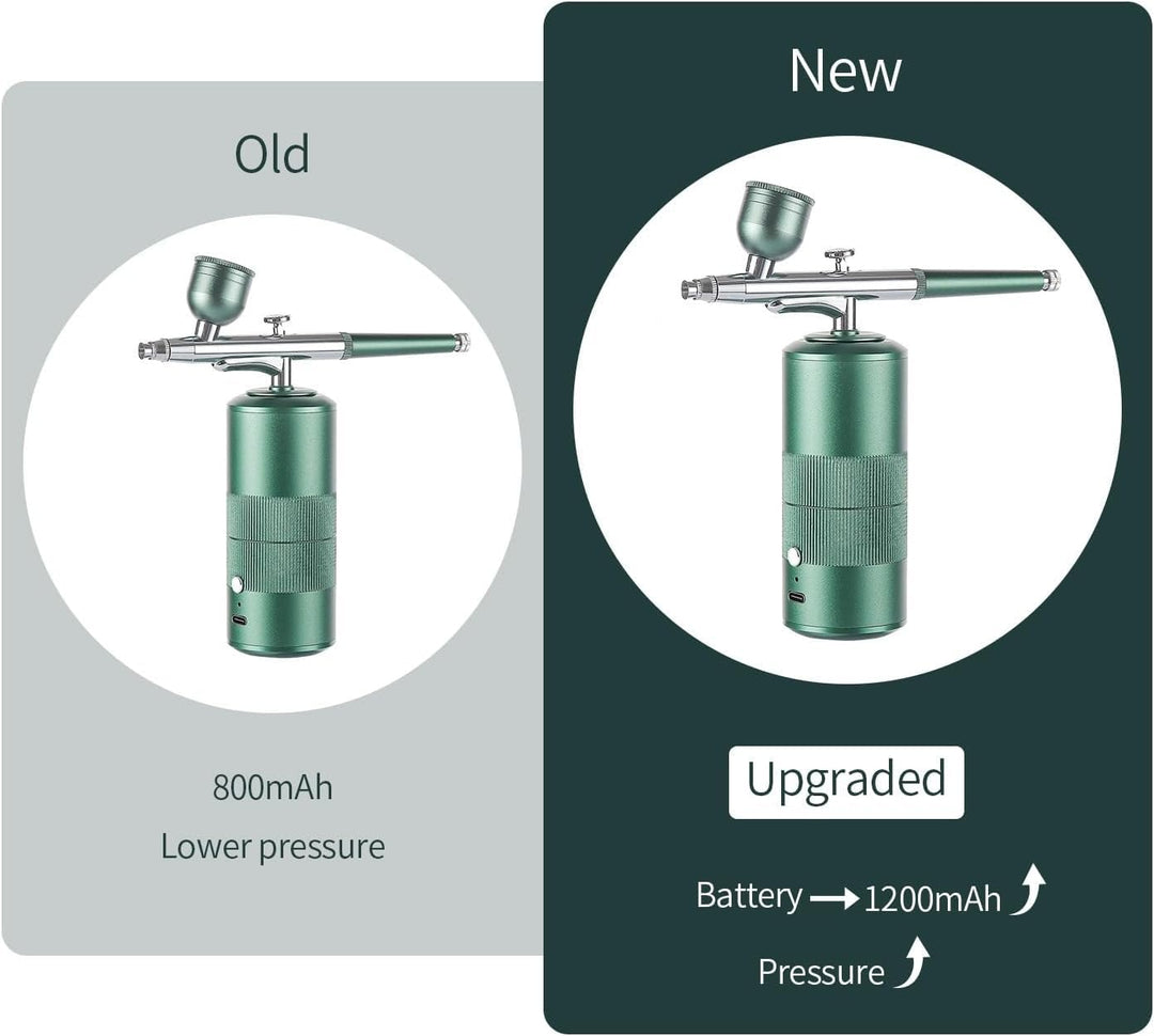 - 【BESSERE KONTROLLE】 Kabellose tragbare Mini-Airbrush mit Kompressor. Höherer Druck kann über einen weiten Bereich schneller eine dickere Beschichtung erzeugen. Die Airbrush-Maschine eignet sich sehr gut für Nagelkunst, Gesichtsbefeuchtung und