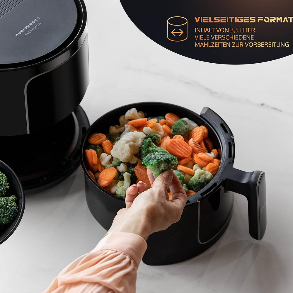 - ✅ XL-GRÖssE: Die Heissluftfritteuse hat ein Fassungsvermögen von 3,5 l für die Zubereitung einer Vielzahl von Mahlzeiten. Dank des abnehmbaren Korbs mit PFOA-freier Antihaftbeschichtung lässt sich der Airfryer schnell und einfach reinigen. Alle