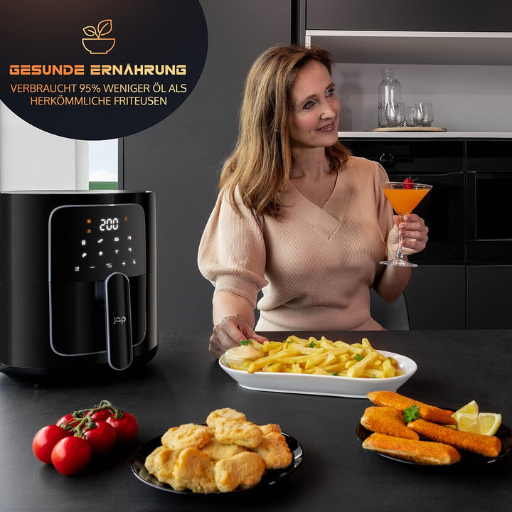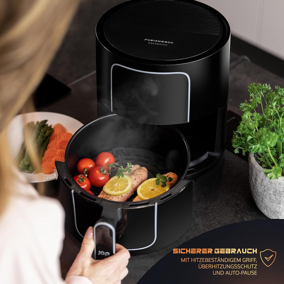 - ✅ FETTREDUZIERUNG UM 95%: Die Fritteuse arbeitet mit Heissluft, die es Ihnen ermöglicht, mit wenig bis gar keinem zusätzlichen Öl zu frittieren. So können Sie gesunde Mahlzeiten zubereiten, ohne auf die Knusprigkeit zu verzichten.
