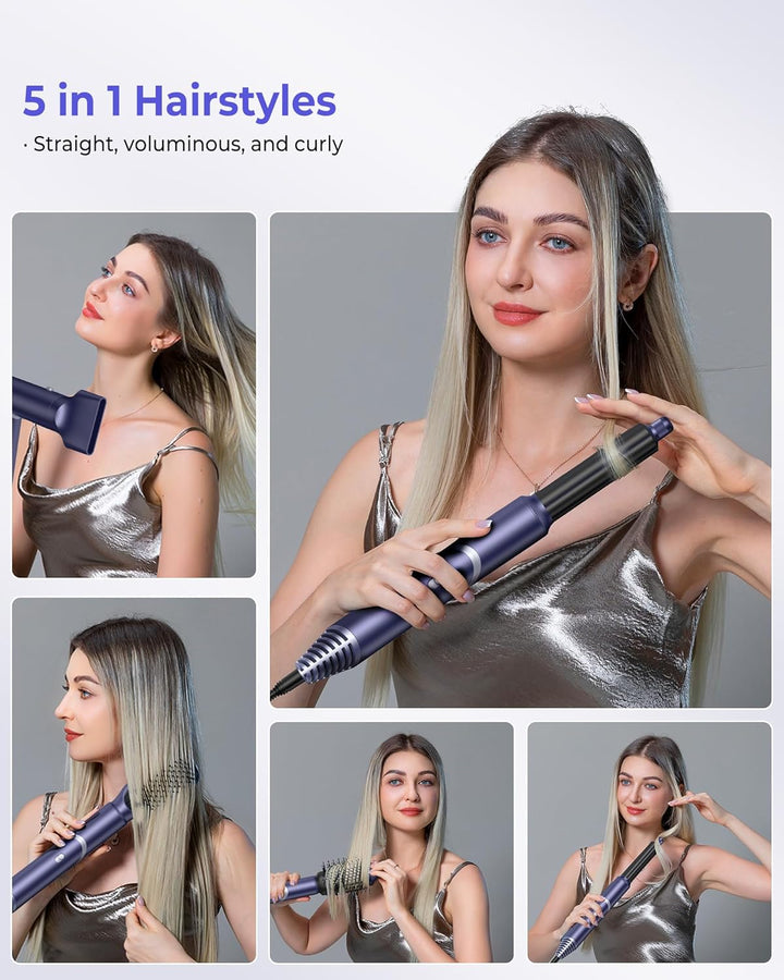 - 5 IN 1 HAARTROCKNER SET:Unser Airstyler kann Ihre vielfältigen Stylingbedürfnisse perfekt erfüllen. Dieser 5 in 1 warmluftbürste set enthält 1 * haartrockner , 1 * thermal brush, 2 * Curly All in One Air Styler, 1 * Massage heissluftbürste zum
