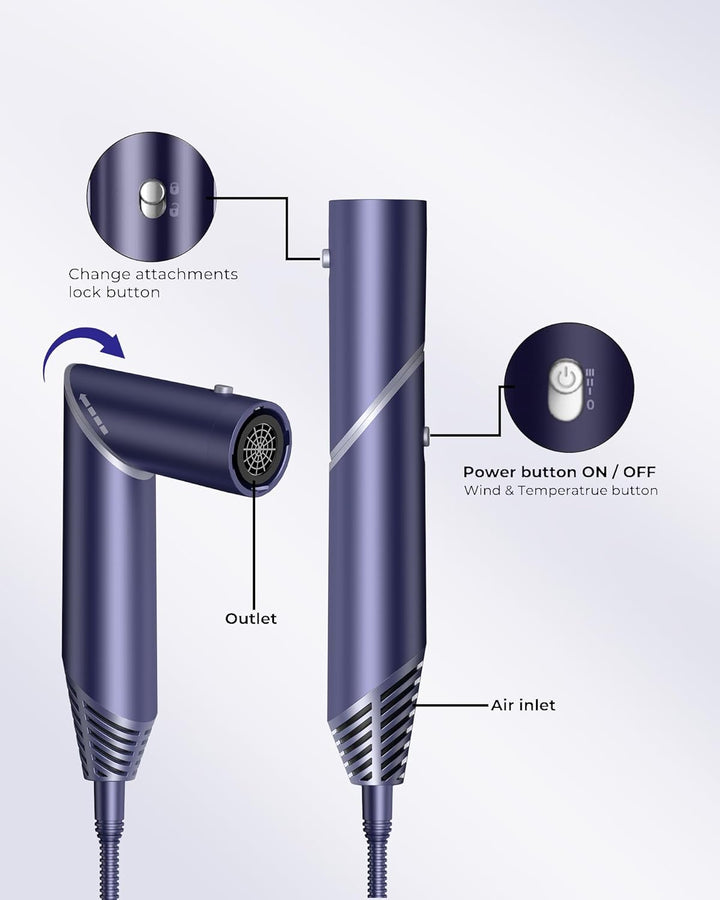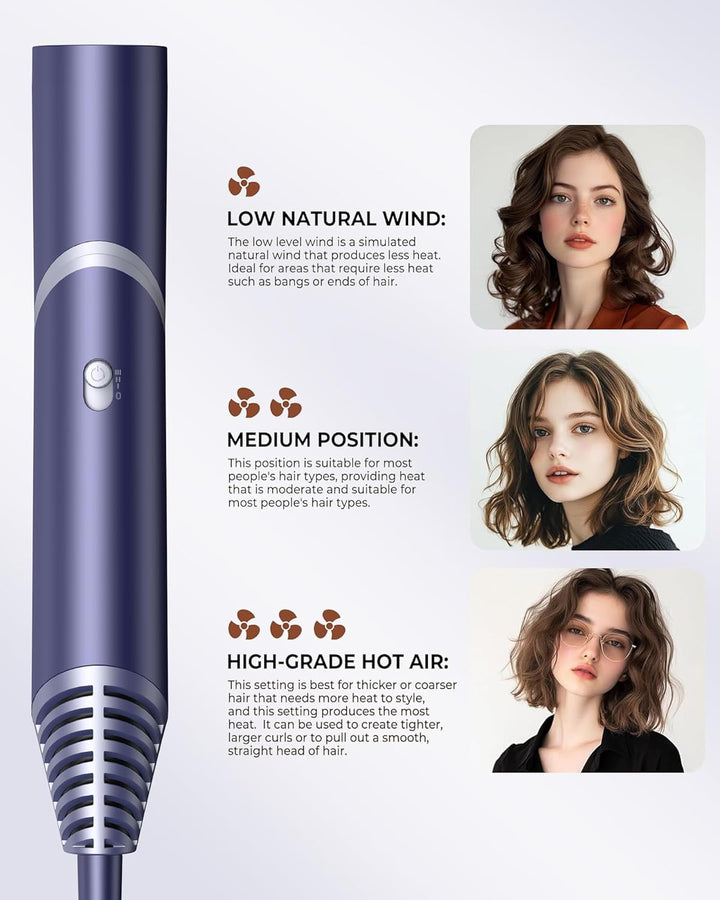 - 3 TEMPERATUR- UND LUFTGESCHWINDIGKEITSEINSTELLUNGEN:✔️Niedrige Temperatur, für trockenes Haar / feines Haar, geeignet für den Sommer. ✔️Mittlere Temperatur, für halbtrockenes Haar / normales Haar, zum Stylen geeignet. ✔️Hohe