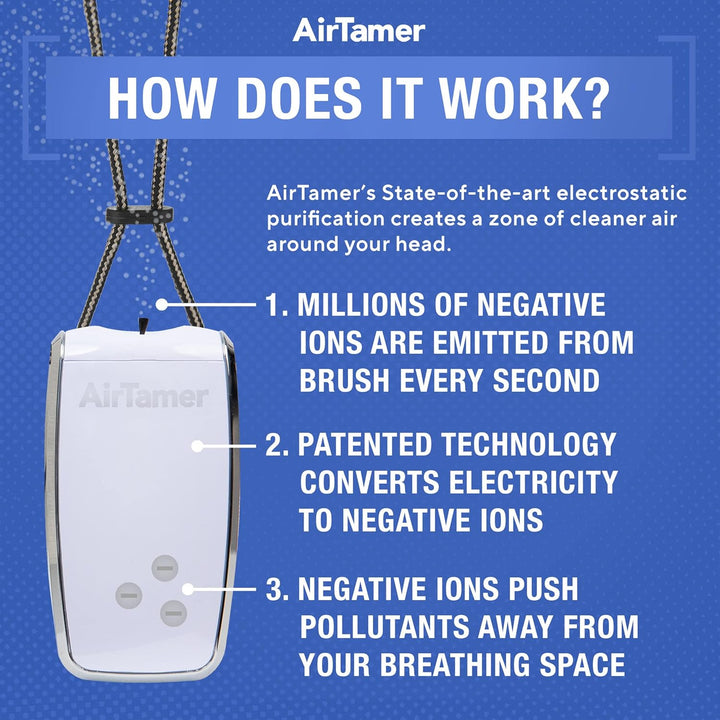 - Der in 55 Ländern erhältliche AirTamer ist seit 2004 der effektivste, persönliche Luftreiniger; er wurde in international anerkannten, unabhängigen Laboren getestet und reinigt wirksam die Luft, die Sie einatmen