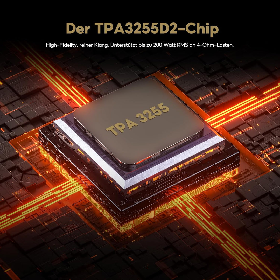 - Geeignet für Hi-Fi-Heimverstärker, entwickelt für Kunden, die Hi-Fi-Sound suchen; Maximale Ausgangsleistung: 200 Watt. Hinweis: Das Paket wird mit einem 32-V-/5-A-Netzteil geliefert, und ein grösseres Netzteil ist erforderlich, um die maximale Ausgangsleistung zu erhalten.