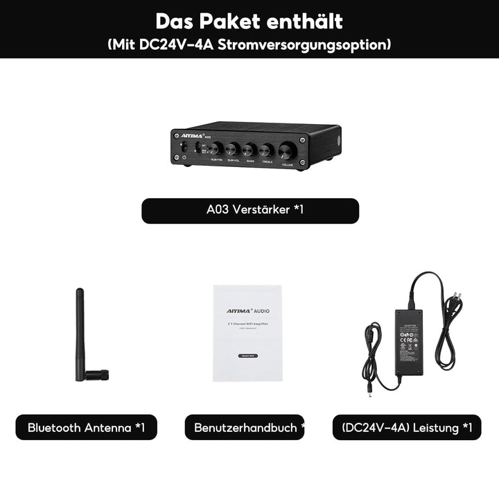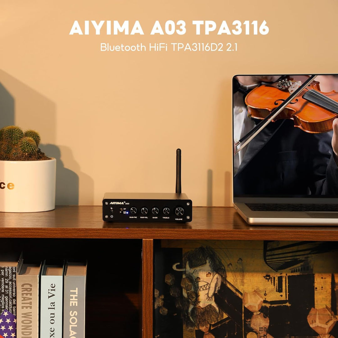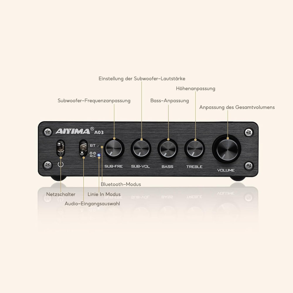 - Mit Subwoofer-Ausgang: Sie können einen passiven Lautsprecher + einen passiven Subwoofer anschliessen, die Anpassung der Subwoofer-Frequenz unterstützen und die Bassfrequenz nach Ihren Bedürfnissen anpassen. Höhen- und Bassregler machen den Sound