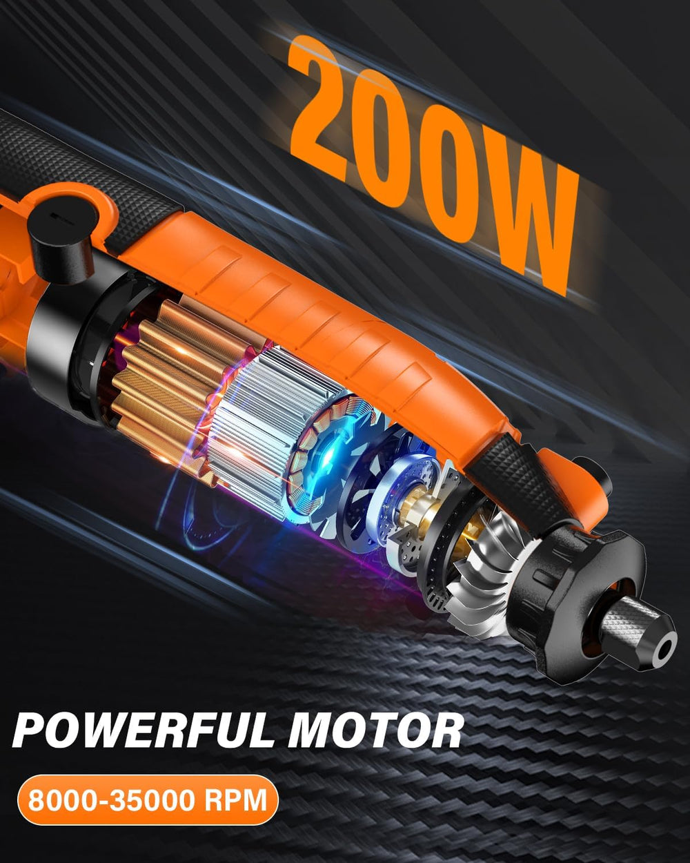 - 【Leistungsstarker Motor & 6 Variable Geschwindigkeiten】Ausgestattet mit einem leistungsstarken 200W Motor, 8000 bis 35000 U/min und 6 Geschwindigkeitsstufen, hilft Ihnen das professionelle multifunktionswerkzeuge von Akdomart, glatter zu schnitzen