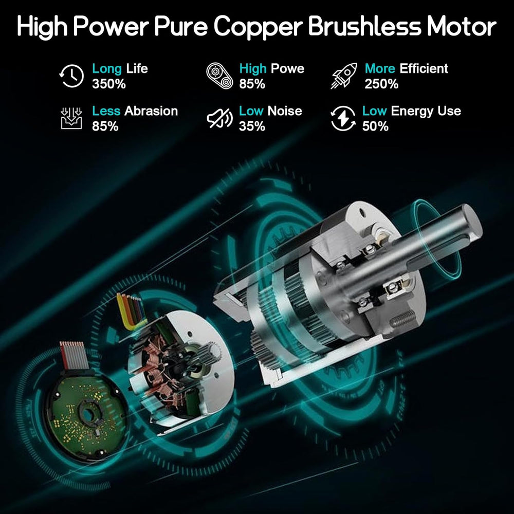 • 【Starker bürstenloser Motor und hohe Effizienz】-- Dieser elektrische Hobel ist mit einem bürstenlosen Motor aus reinem Kupfer ausgestattet, bietet hervorragende Leistung und kann mit 16500 U/min mit 82 mm Hobelbreite und 2 mm Hobeltiefe betrieben