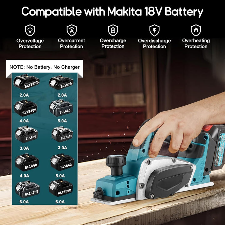 Akku-Hobel Kompatibel mit Makita 18V Akku, Professional 18V Akku Hobel Handhobel Elektrohobel Einhan
