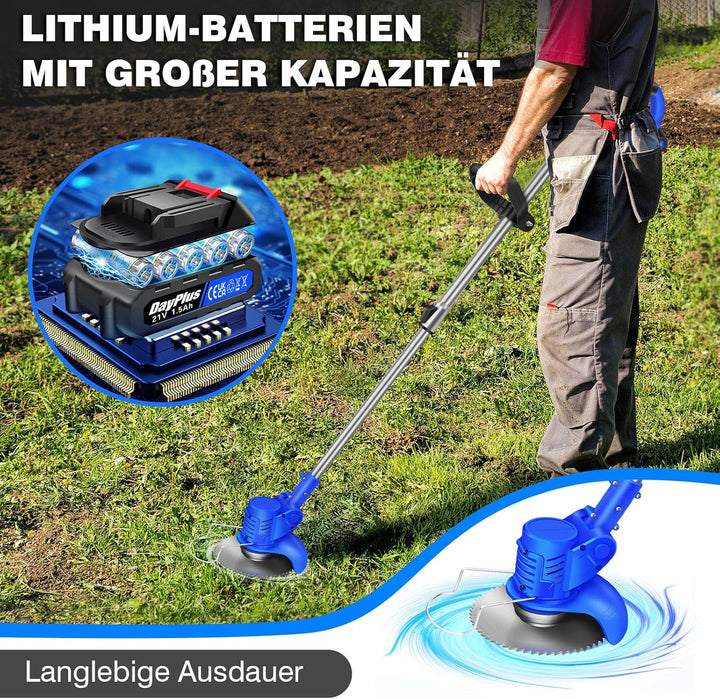 - ✅Gartentrimmer mit Klingen: -Akku-Rasentrimmer mit 21V Lithium-Ionen-Akku mit grosser Kapazität, der 30-60 Minuten ununterbrochene Betriebszeit bietet und nur 1-2 Stunden zum Aufladen benötigt. Kommt mit 2 verschiedenen Arten von Kreissägeblatt und