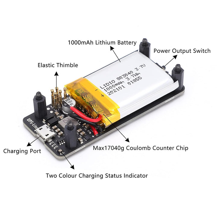 - Ein USV-Netzteil speziell für Zero, das einen Kraftstoffanzeige-Chip (MAX17040G) und einen 1000mAh Lithium-Akku integriert.