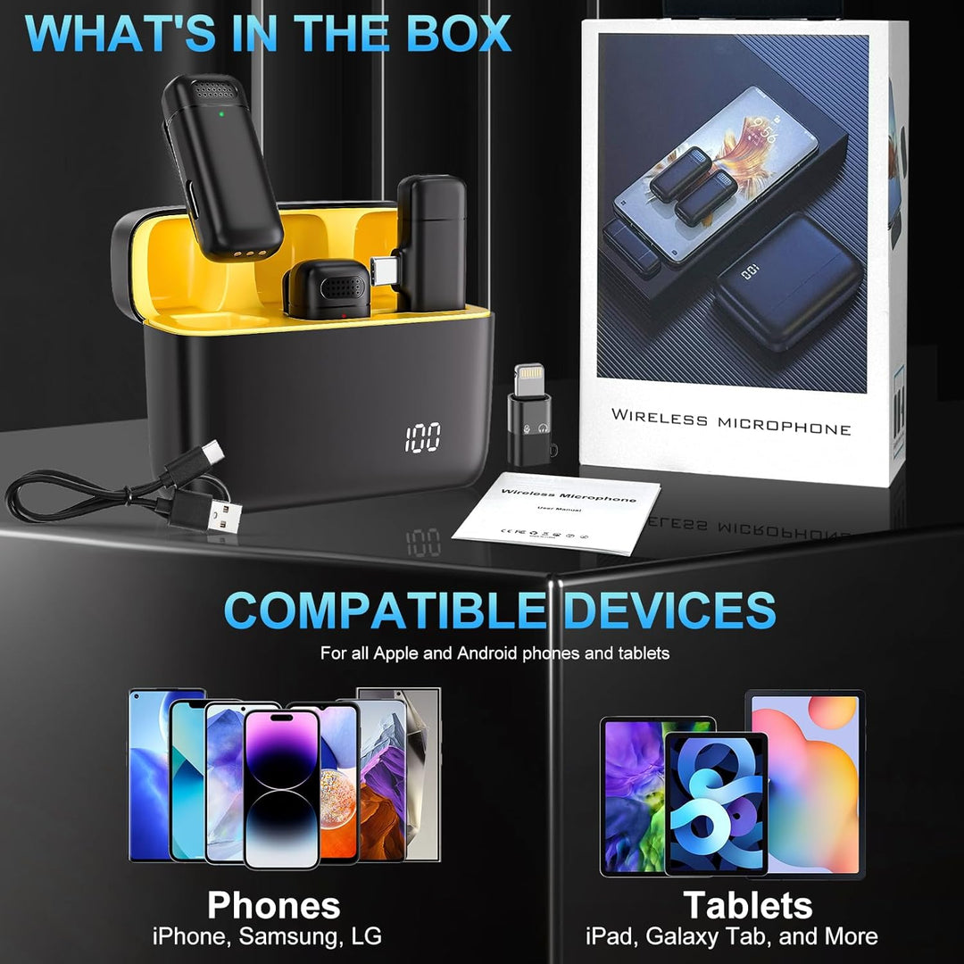 - đ€ăUniverseller EmpfĂ€nger fĂŒr breite KompatibilitĂ€tăDas kabellose Lavalier-Mikrofon-Set enthĂ€lt 2 Mikrofon, einen Typ-C-EmpfĂ€nger, einen Lightning-Adapter, ein Ladeetui und ein Ladekabel. Es passt sich den meisten GerĂ€ten auf dem Markt an und