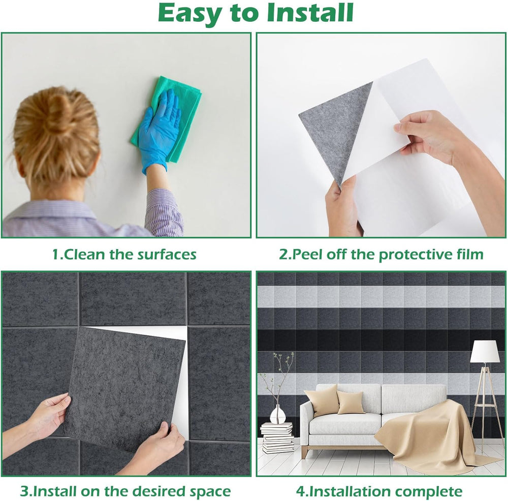 - EINFACHE INSTALLATION: Unsere Akustikplatten werden mit integriertem Klebstoff geliefert. Im Vergleich zu anderen Produkten auf dem Markt sind unsere schalldämpfenden Platten daher einfacher zu installieren. Sie müssen nicht extra Klebstoff oder andere