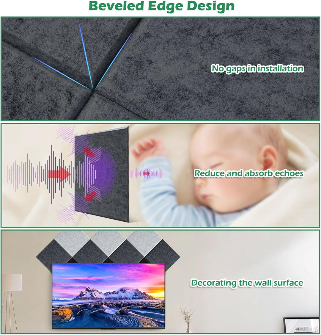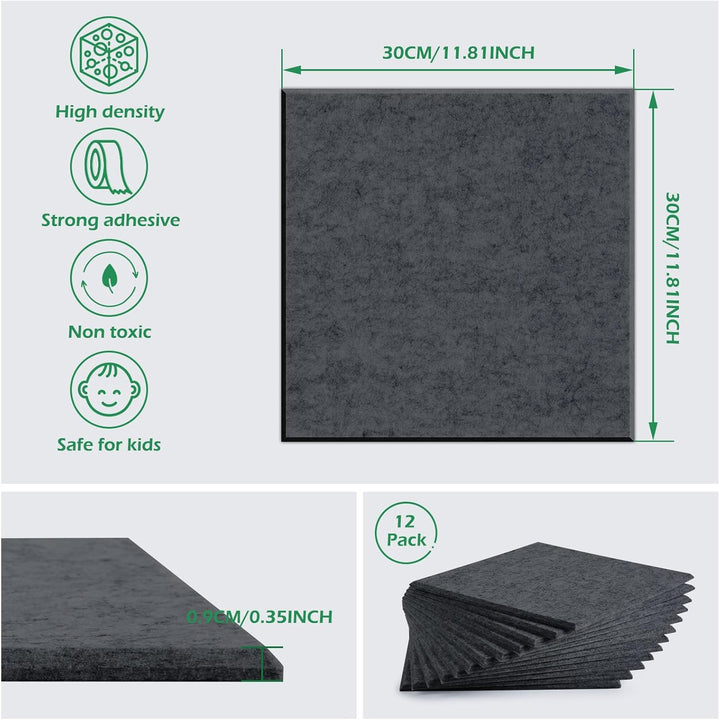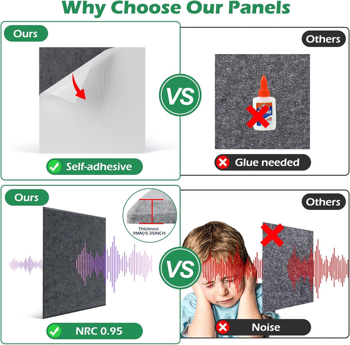 - GERÄUSCHREDUKTION: Unsere Akustikplatten haben eine Dicke von 9mm/0.35in und erreichen eine NRC-Bewertung von 0.95, was verschiedene unnötige Geräusche wie Echos, Wellengeräusche und Nachhall effektiv reduziert und absorbiert. Jedes Paneel ist